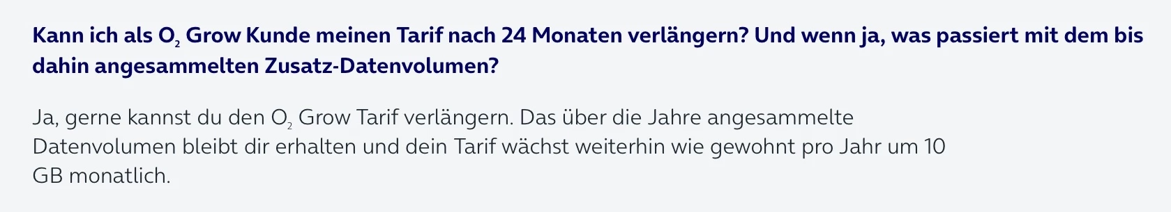 Bei der Vertragsverlängerung meines O2 o zu O2 Grow wird mir ein Rabatt von 24 x 15 € gewährt.
