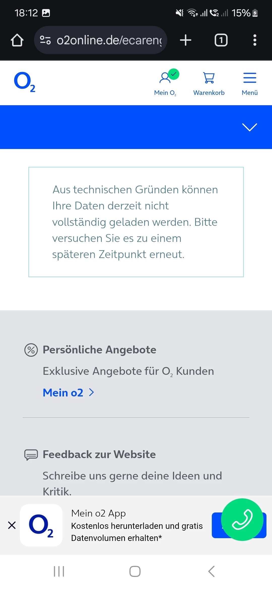 Beachte bitte, dass bis heute um 15:00 Uhr Wartungsarbeiten am Kundenportal vorgenommen worden, vielleicht sind noch nicht alle Funktionen freigegeben. Das halte ich aber für unwahrscheinlich, jedoch zeigt die Fehlermeldung “aus technischen Gründen”.