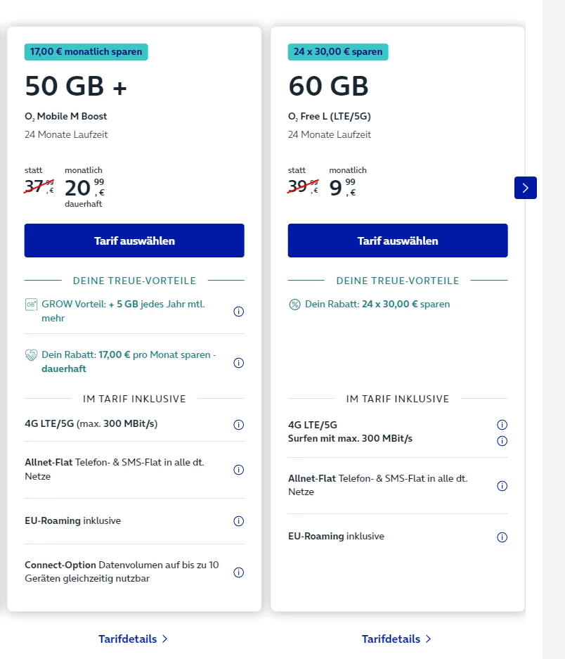 Was ist denn langfristig gesehen besser? Ich würde durch den O2 Free L weniger zahlen habe aber dann “nur” 24 Monate lang den Rabatt. Die Frage ist wenn ich jetzt nochmal damit verlängere ob bei der nächsten Vertragsverlängerung mir wieder O2 Free L vorgeschlagen wird oder nicht. Bei den Mobile Boost Tarifen habe ich wie da schon angezeigt natürlich diesen “dauerhaften” Rabatt aber muss insgesamt dann mehr zahlen. Wird der denn mehr mit den Jahren der dauerhafte Rabatt?