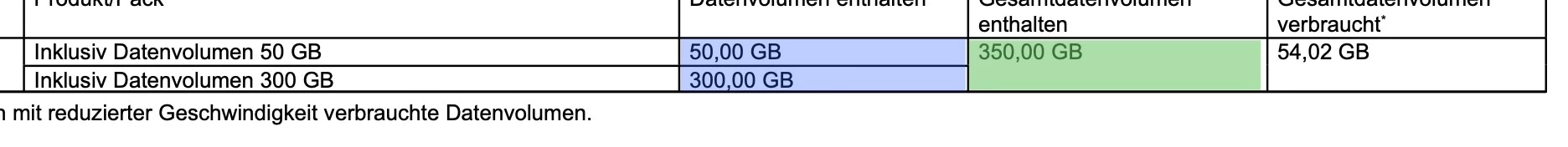 Ich hatte zuvor einen Vertrag mit 50 GB Datenvolumen und habe dann Verlängert auf den
