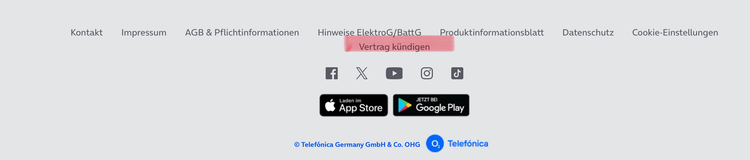 Für die Kündigung nach unten scrollen und auf Vertrag kündigen klicken.
