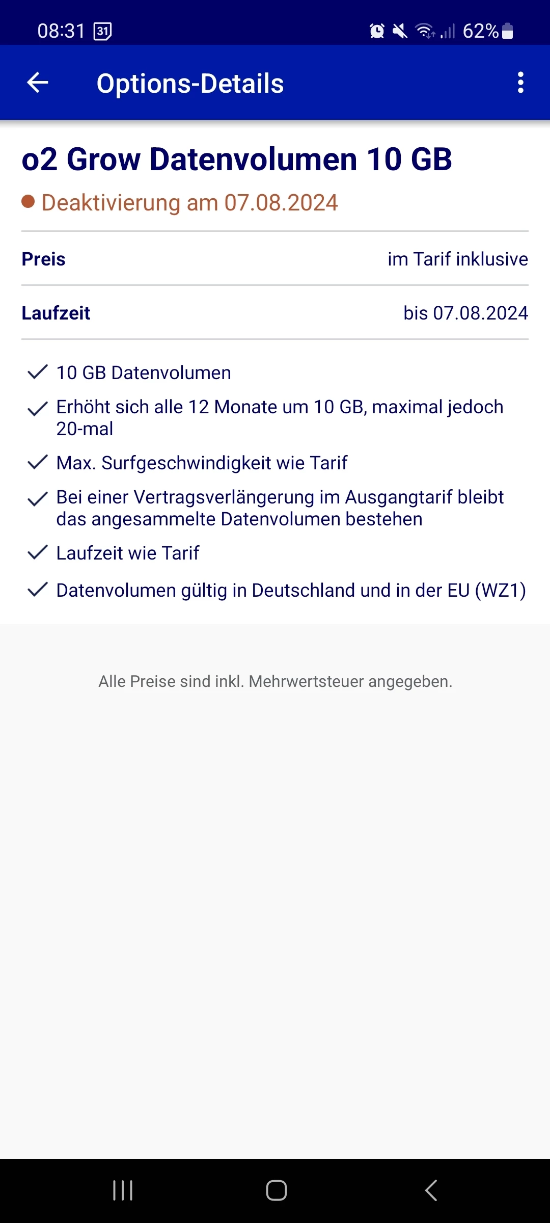 Das entsprechende Grow-Paket wird jeweils jährlich deaktiviert und dann anschließend durch das nächstgrößere ersetzt. Du hast also jetzt zusätzlich 10 GB und bekommst dann im August 80 GB.