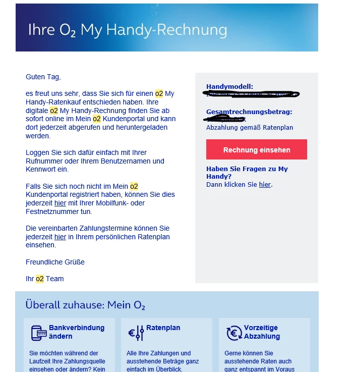 Nein, für My-Handy kommt keine Mail für wine Rechnung. Eine Rechnung wprde für einen Mobilfunkvertrag kommen. Wie geschrieben kommt für My-Handyverträge, bei onlineabschluss, die Rechnung per Post.