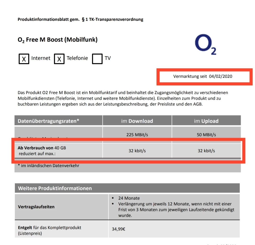 Wie von @Bollermann richtig geschrieben, wird das Datenvolumen in den neuen Tarifen zwar verdoppelt, allerdings wird nach Verbrauch des doppelten Datenvolumens auf 32 kbit/s gedrosselt, wie im Screenshot von @Bollermann aus unserem Produktionformationsblatt ersichtlich ist. Diese Info sollte auch in deiner Bestätigung des Tarifwechsels enthalten sein. Magst du mal in die Mail/den Brief reinschauen und uns Feedback geben?