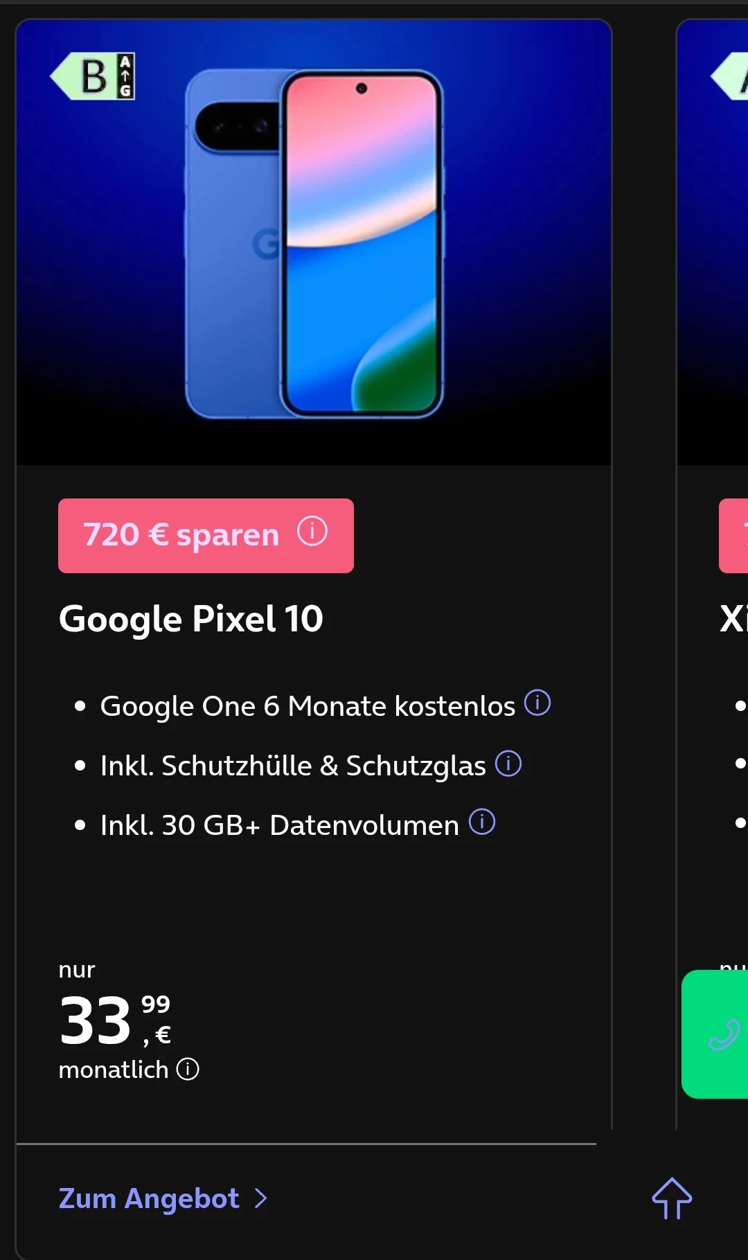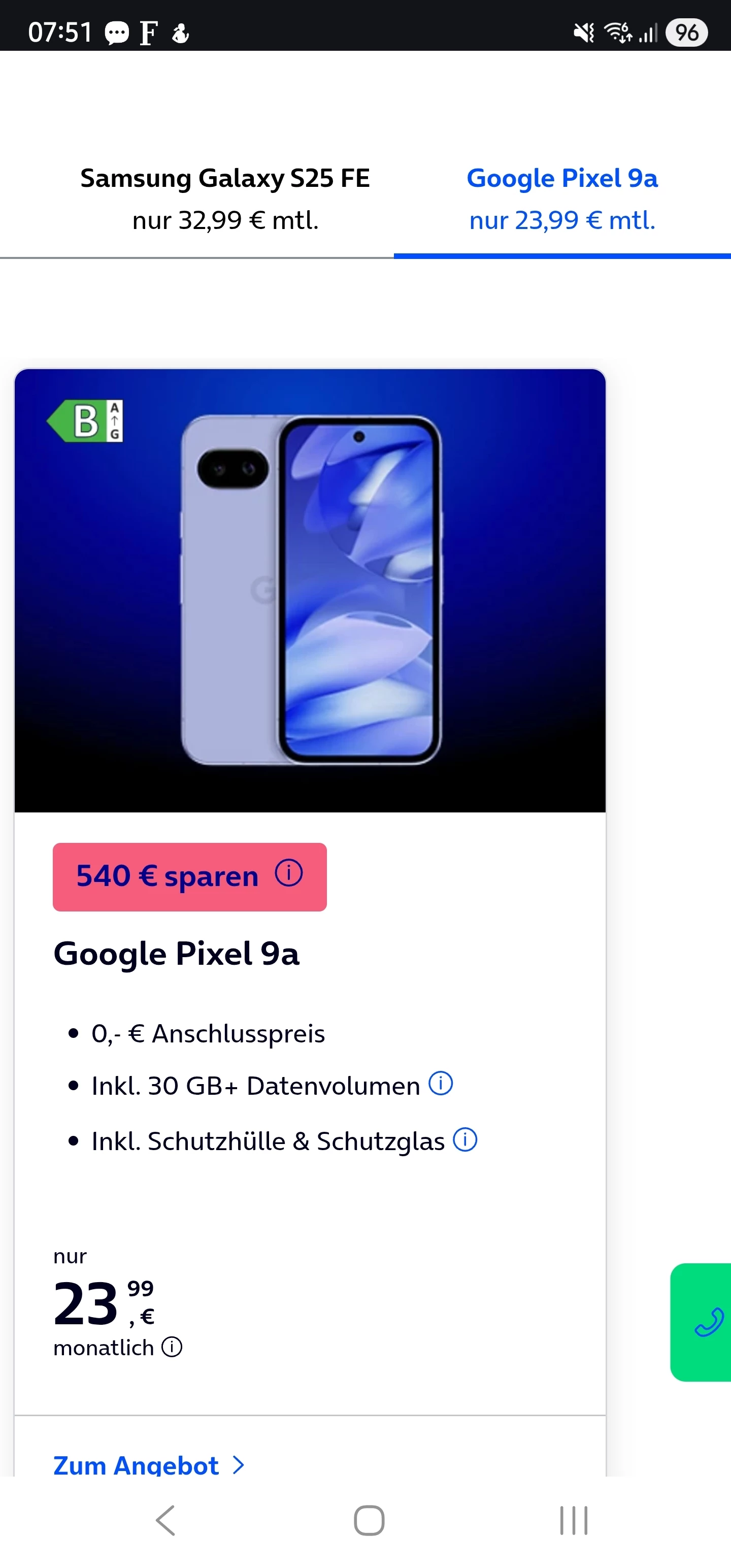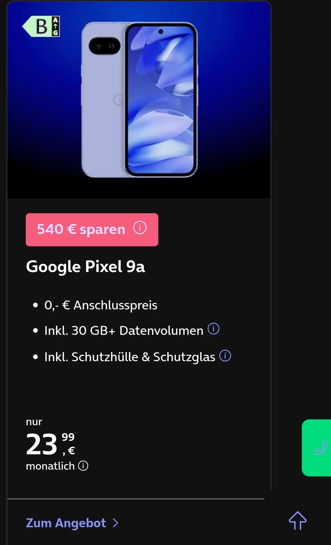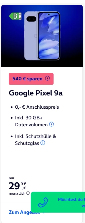 Ich hab mir jetzt nochmal das Angebot angeschsut (Pixel 9a Aktion) und sehe nur im Werbelink (siehe Screenshot) die Info darüber und das der Anschlusspreis 0€ beträgt.