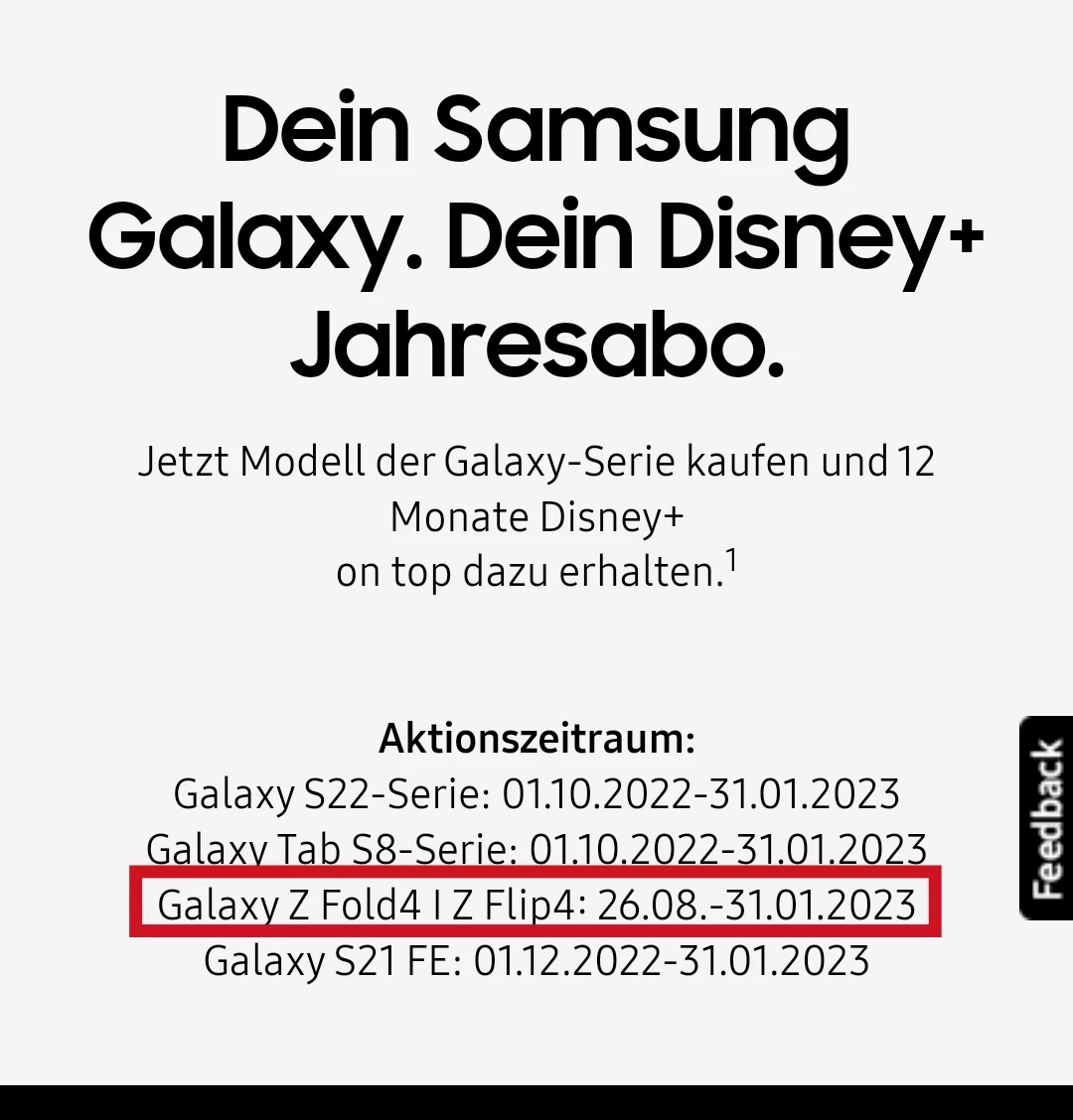 Ablehnung Disney+ durch Samsung (Aktion für Flip4)