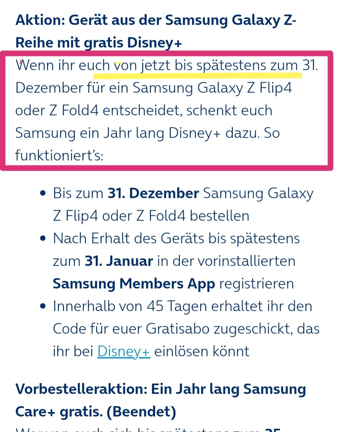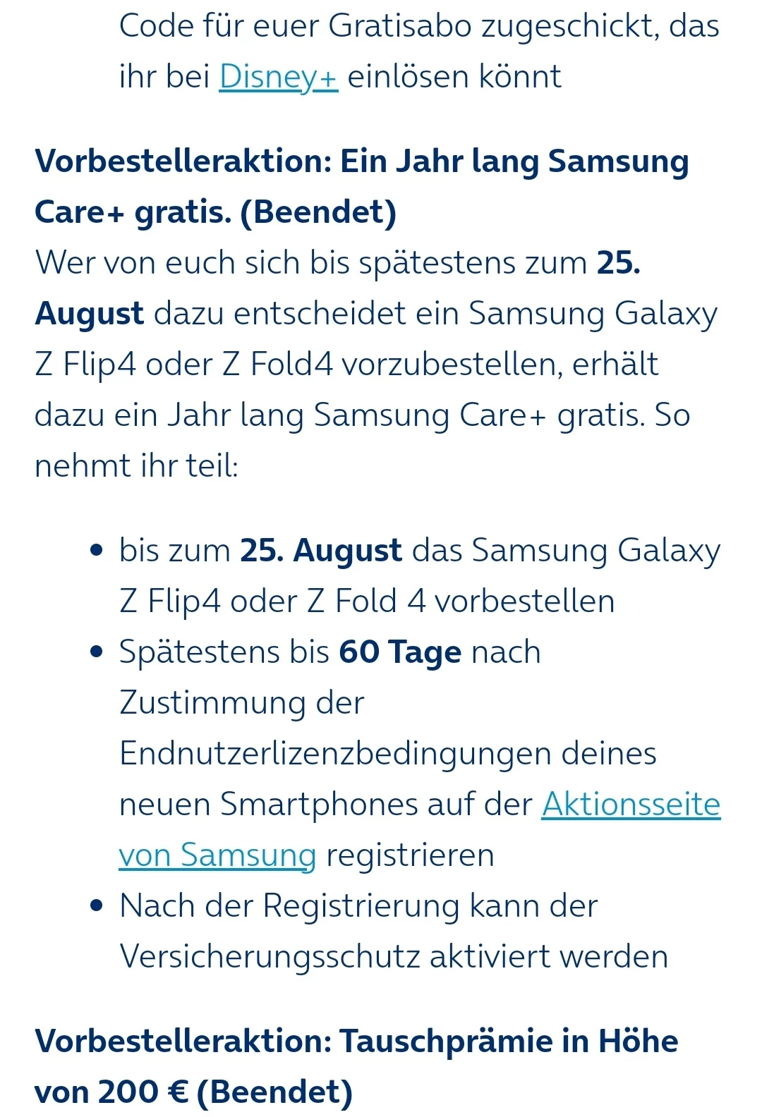 Edit: jetzt weiss ich warum ich das überlesen habe. Da steht nichts von Disney sondern von Samsung Care+. Ich habe sicher wieder etwas übersehen.