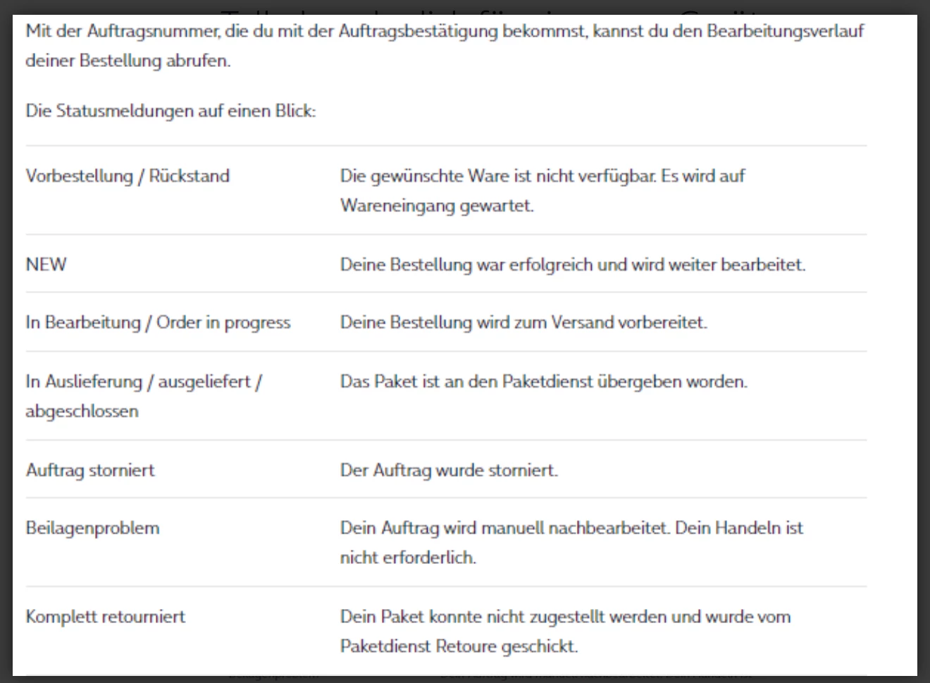 ich hab ein MacBook bestellt und die Anzahlung wurde schon gezahlt, beim Auftragsstatus steht „Beilagenproblem“..