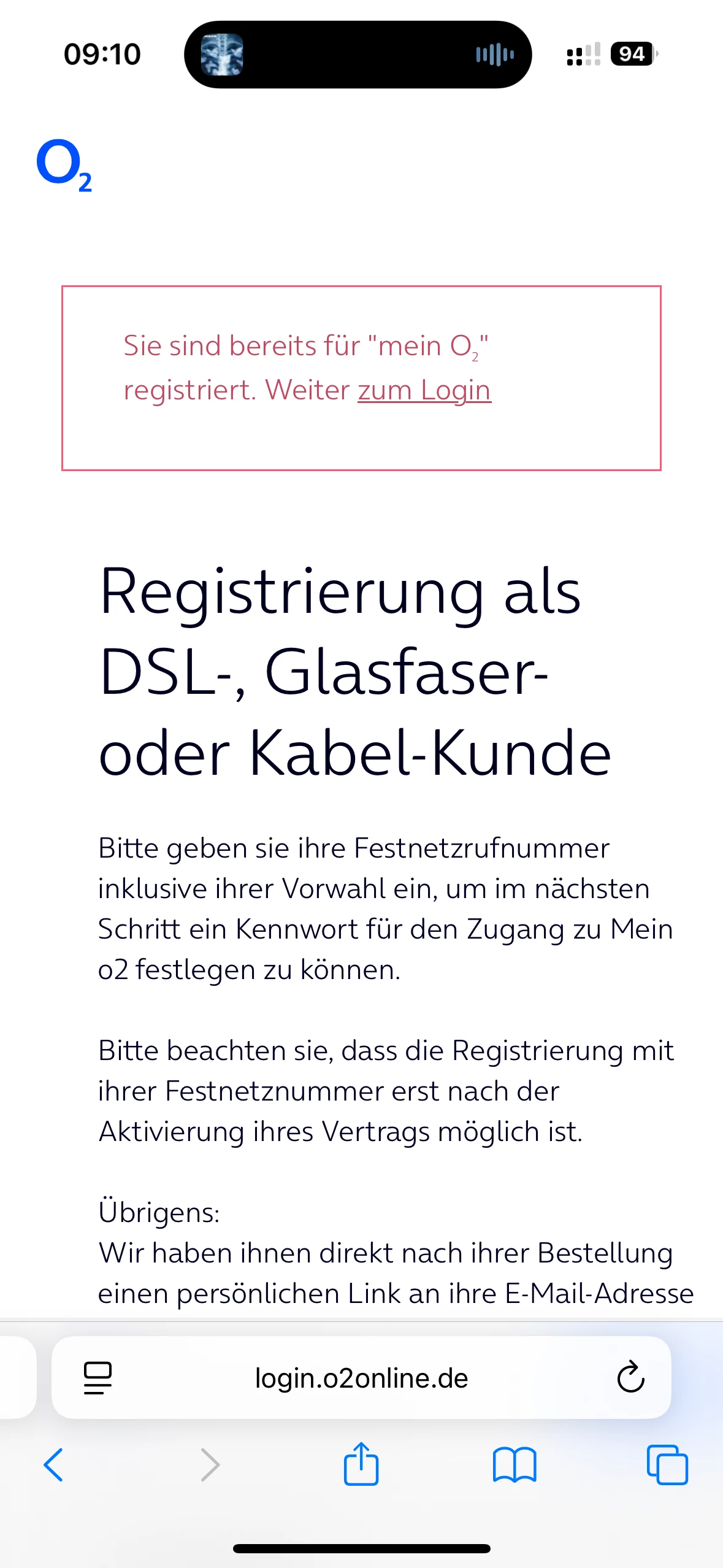 leider kann ich mich nicht erneut registrieren, da ich schon mit der Festnetznummer ja registriert bin. Das sagt mir die Webseite.