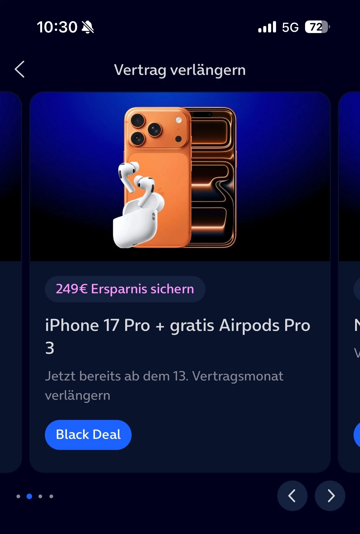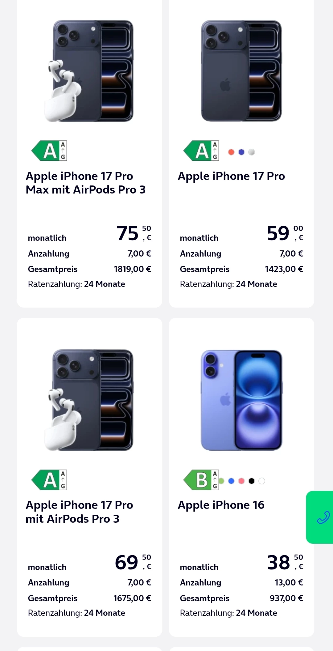 allerdings ist die Werbung mit den „gratis AirPods Pro“ anscheinend nicht so richtig… wenn ich den Vertrag verlängern will kostet das iPhone pro 17 mit den „gratis“ Kopfhörern über die drei Jahre 1639€ und bei Auswahl ohne die „gratis“ Kopfhörer 1423€