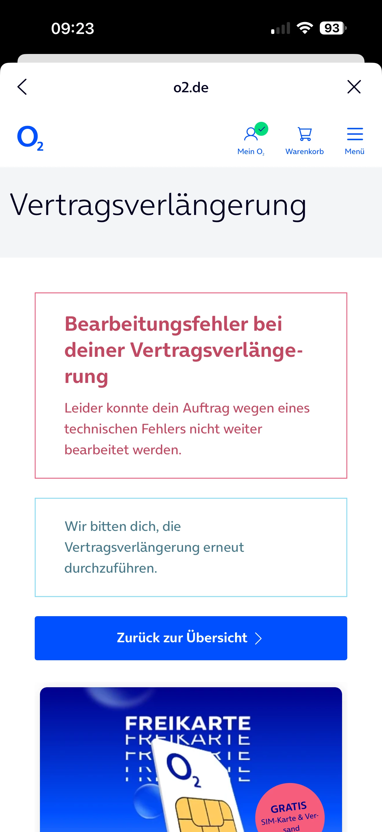 Wenn ich meinen Vertrag mit genau diesem Bundle verlängern will, kommt immer der folgende Fehler: