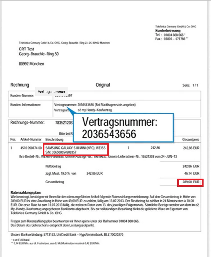 Danke , und cool das es sowas gibt aber auch dort finds ich keine vertragsnummer, Rechnung ist aber vorhanden.  Was da aufgelistet ist : Rechnungsnummer: Kunden-Nr: Auftragsnummer: Ihre Referenz: Versanddatum:
