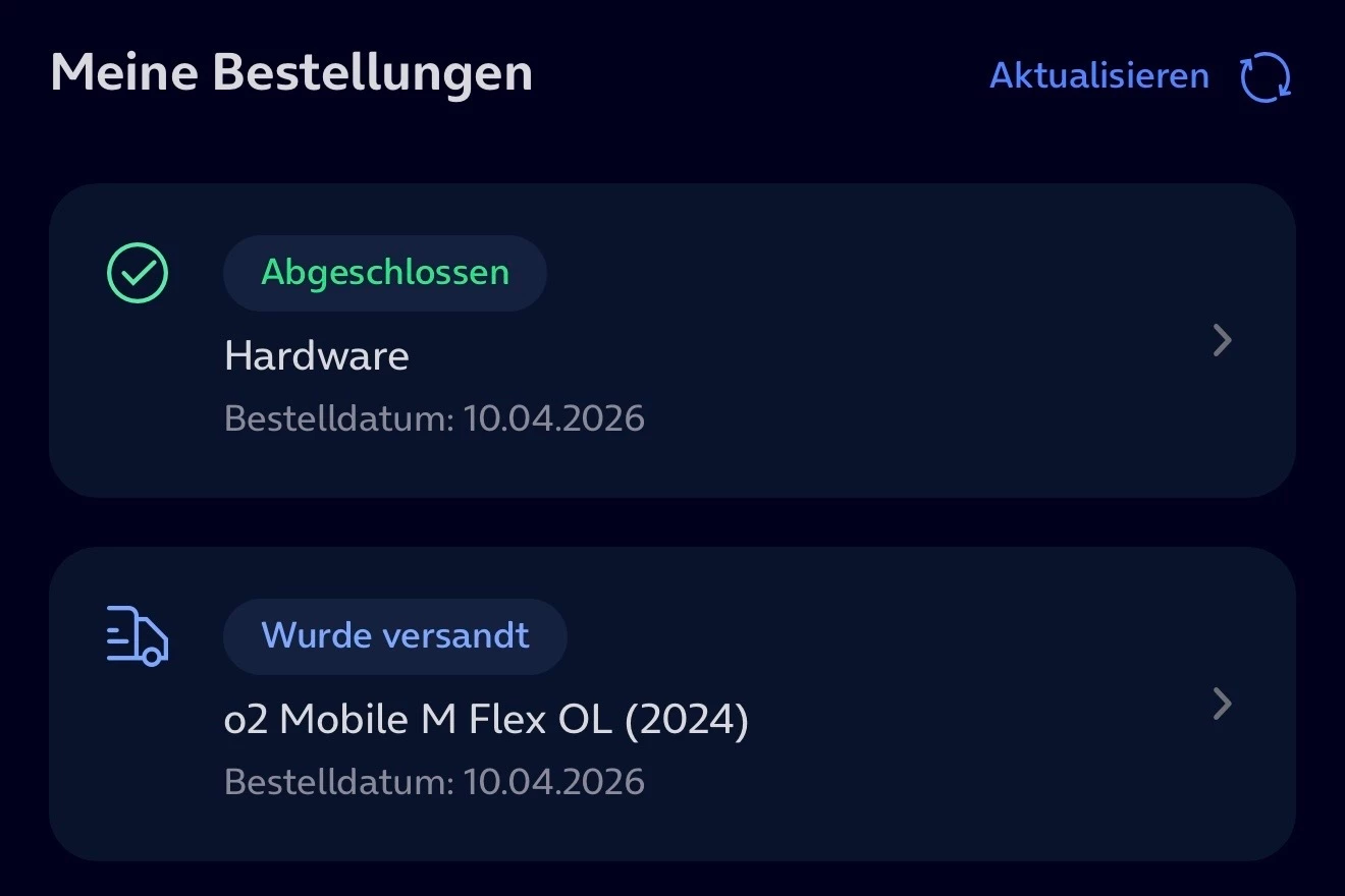 ich habe am 10.04.2026 ein handy & eine Sim karte bestellt.