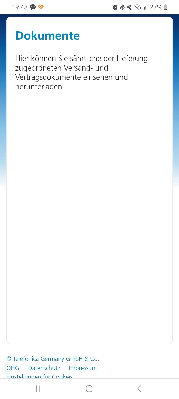 Ich konnte mich mit meiner Auftragsnummer und Plz einloggen. Allerdings kommt nur ein leeres Feld bei den Dokumenten. Technischer Fehler?