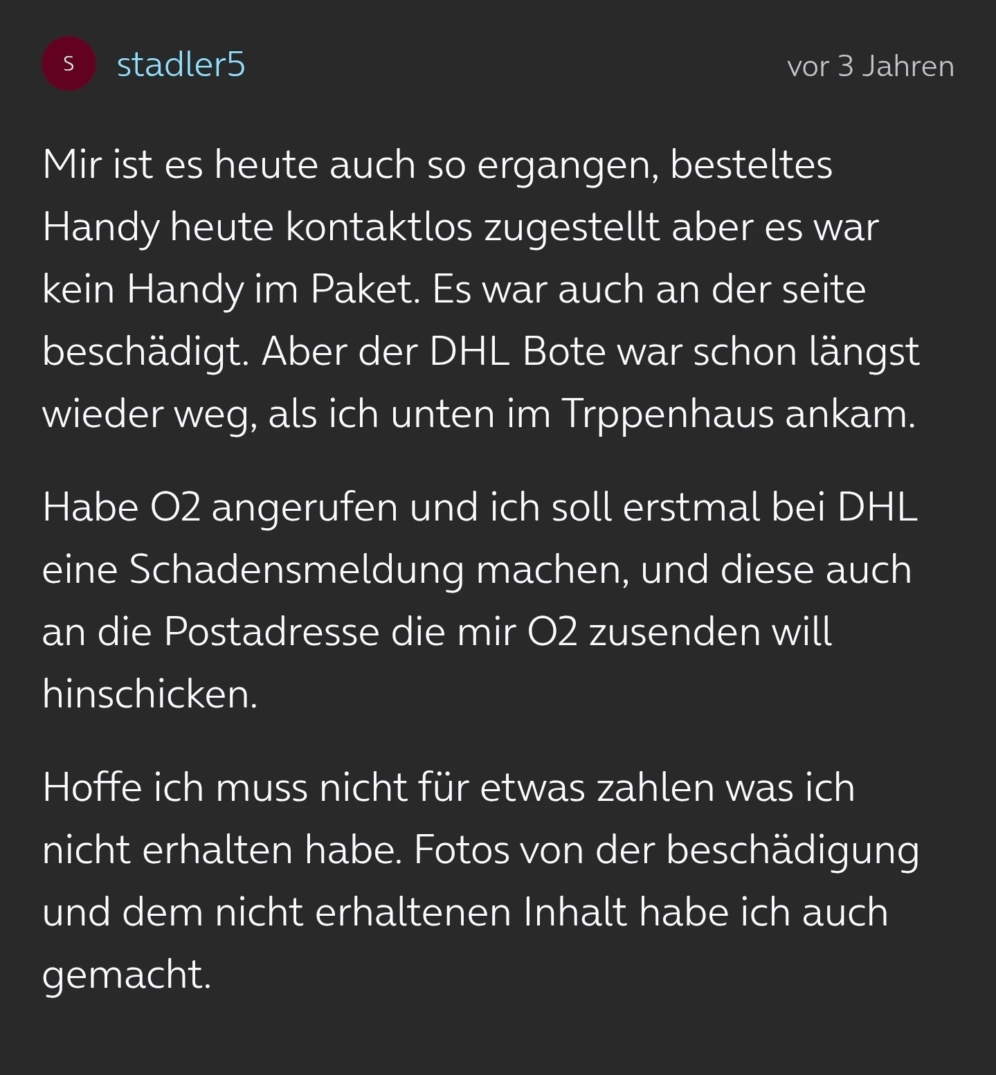 Eine Kopie der abgestempelten und unterschriebenen DHL-Schadensanzeige sendest du dann an den o2 Kundenservice.