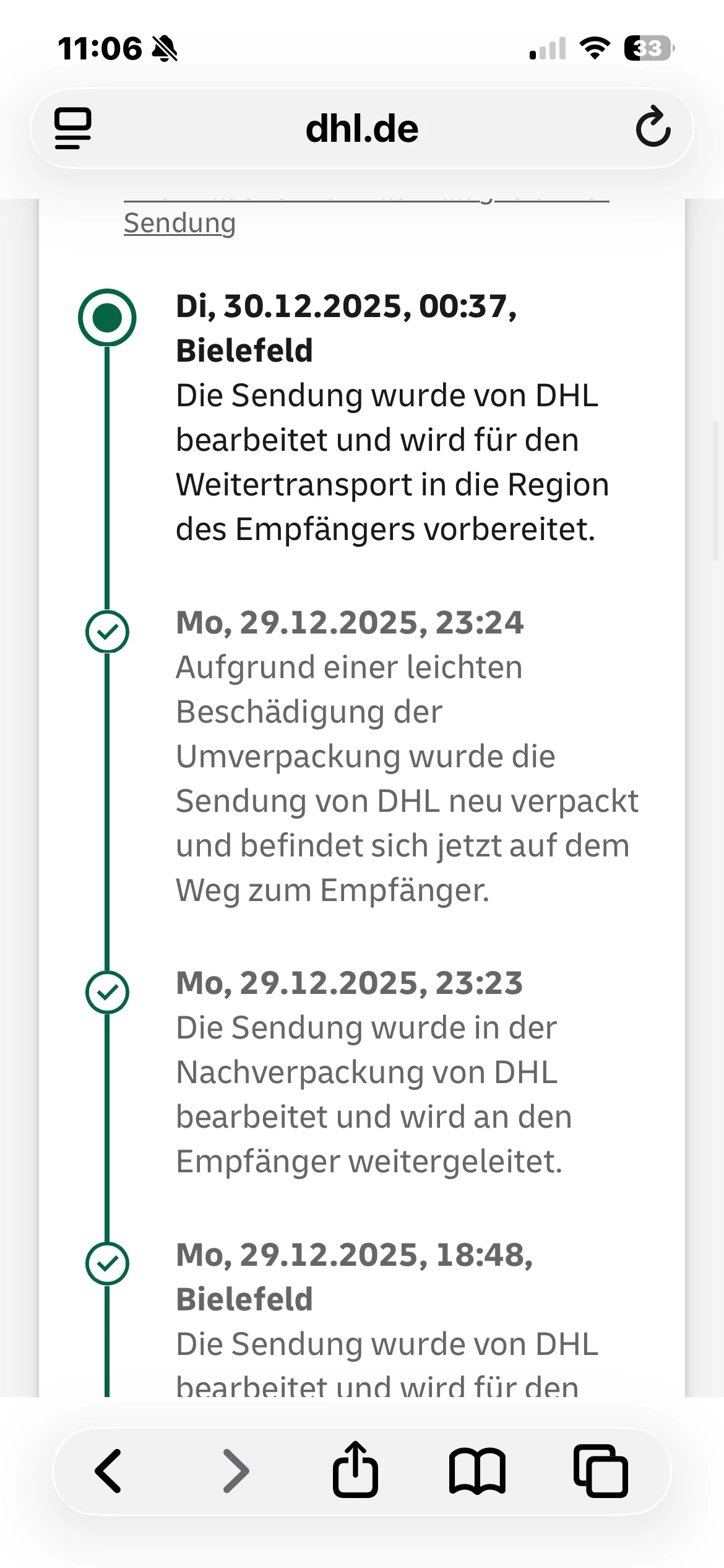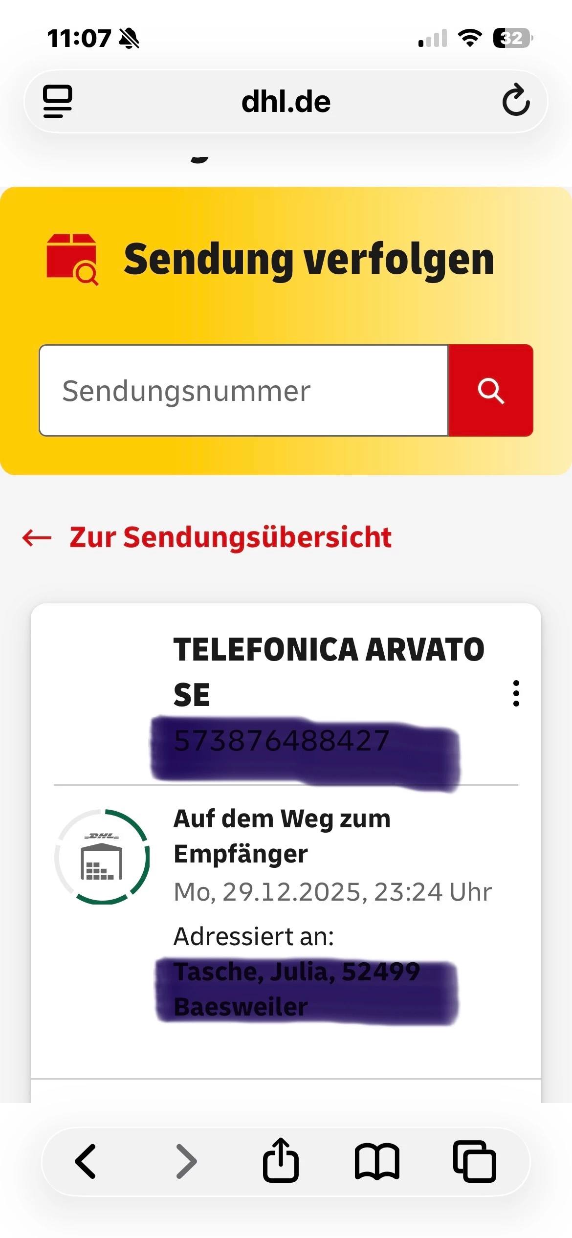 Wenn ich jetzt diese interne Nummer bei DHL eingebe , steht da nicht so wirklich etwas aussagekräftiges.