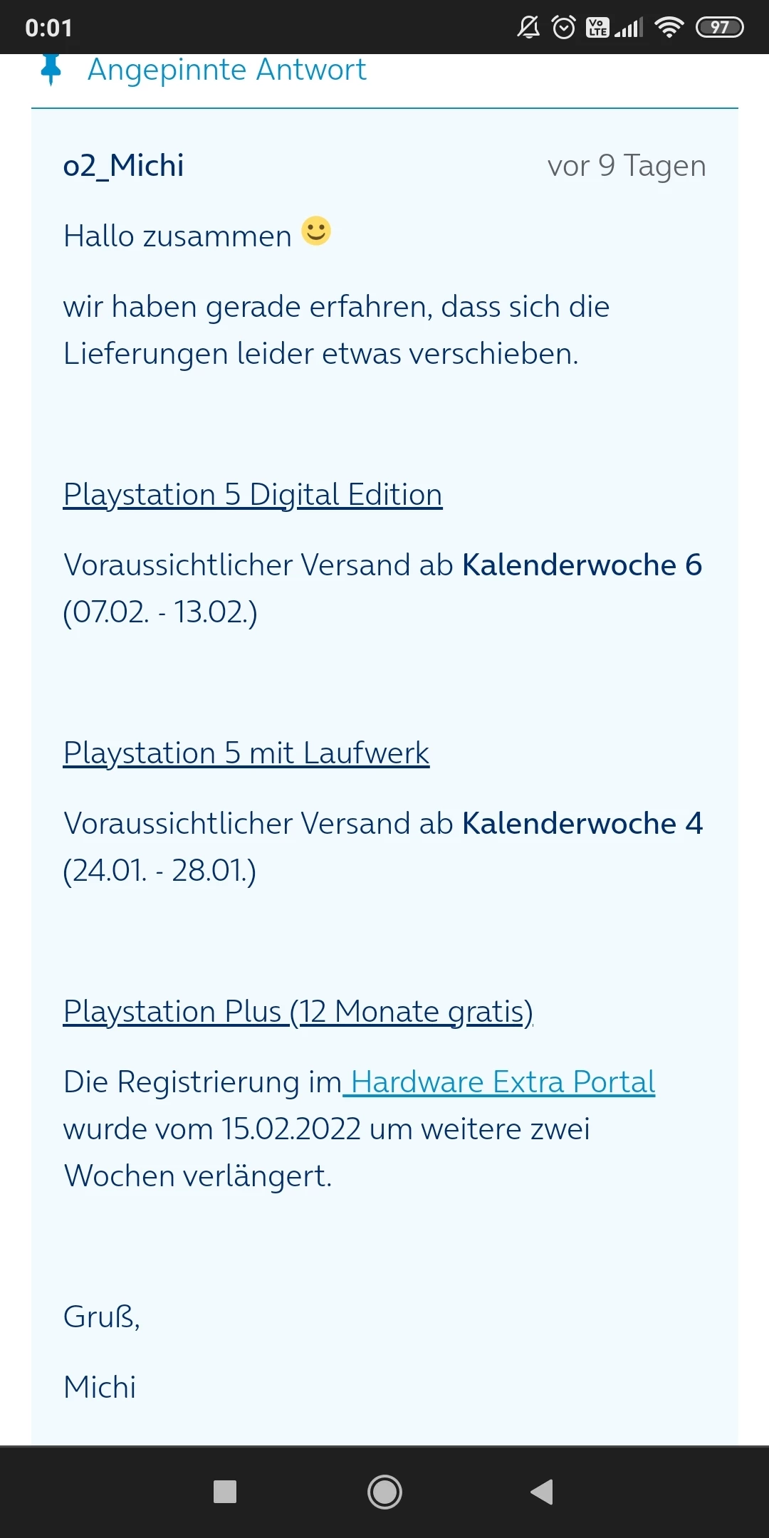 Meine PlayStation 5 ist am 14.12.2021 bestellt und immer noch nicht angekommen. Mir wurden schon 3 Termine versprochen und dir wurden nicht gehalten😒7 Wochen Lieferzeit waren am 01.02.2022 rum!