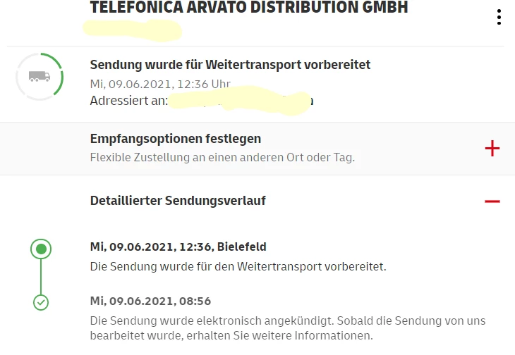 Steht bei denen die schon dir Sendungsverfolgung haben was anderes in der O2 App als in Bearbeitung?