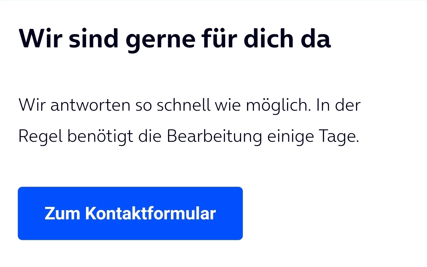 Der Kontakt Formular hatte ich schon ausgefüllt und geschickt aber bisher habe ich keine Antwort bekommen.