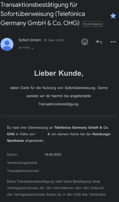 Wenn du damals eine Anzahlung für eine Bestellung bei uns überwiesen hast, hattest du dann per E-Mail eine Bestellbestätigung mit einer Auftragsnummer erhalten?