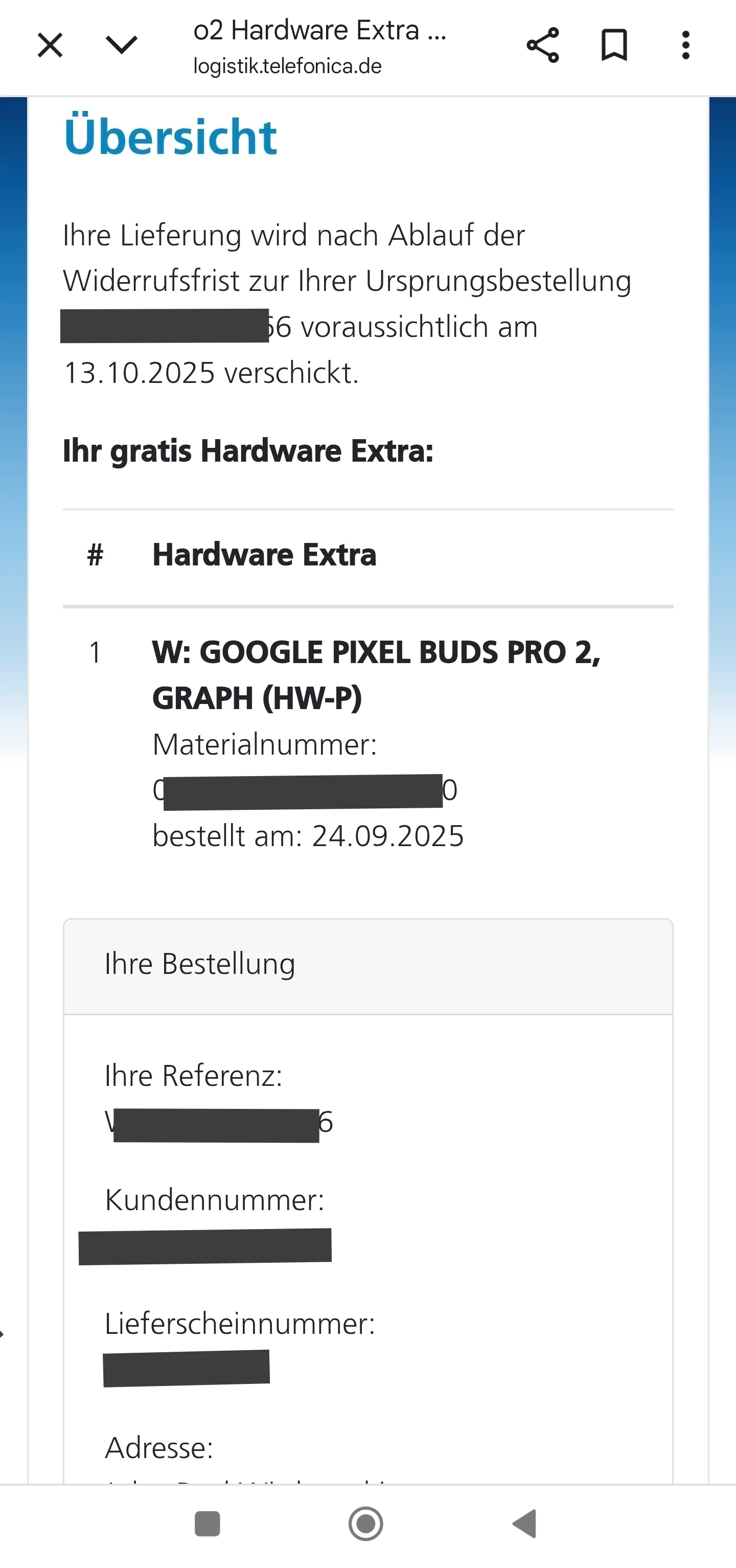 Also, ich habe vorher versucht den Stand für die Extra Hardware über Bestellungen im Logistik Center abzufragen. Da stand natürlich nichts darüber.
