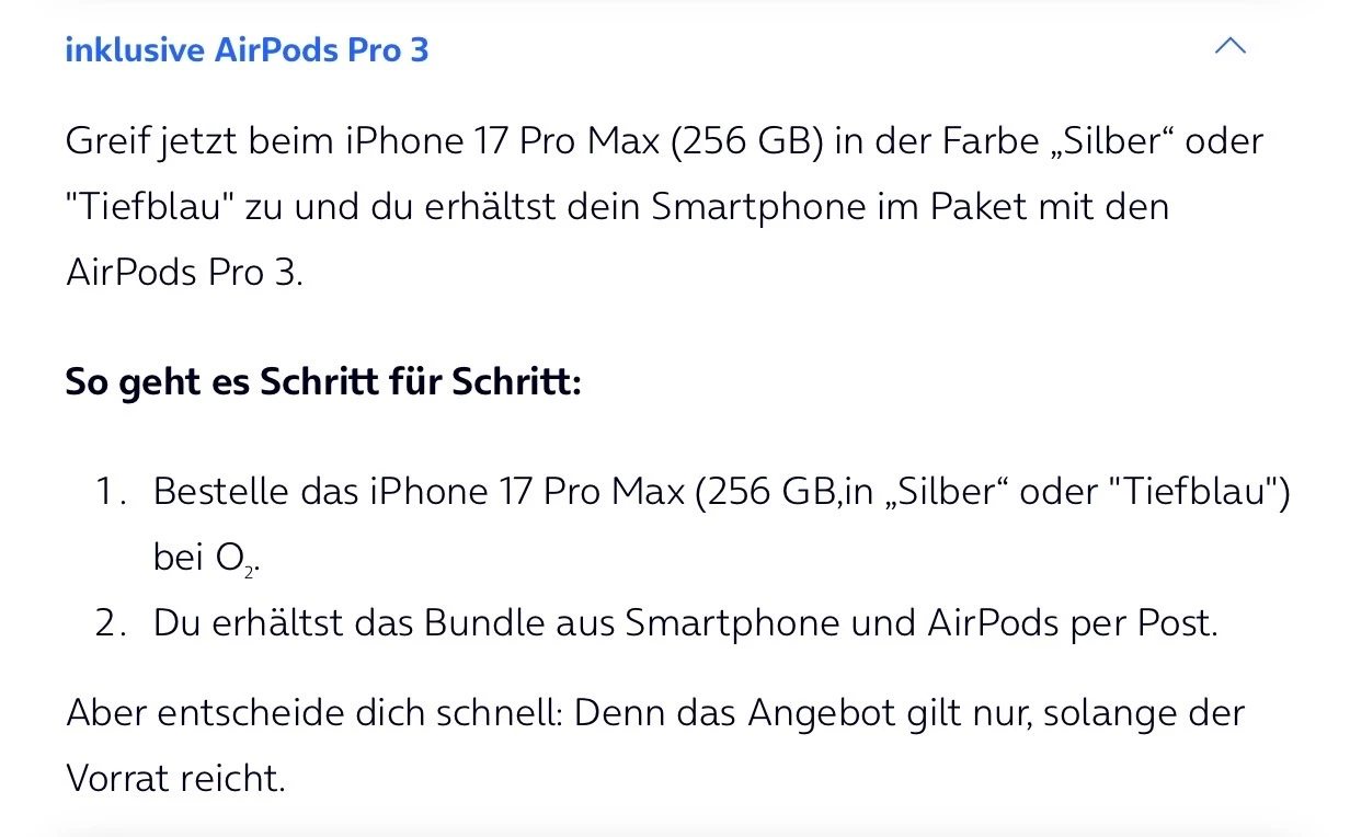 Hi! Ich habe eine Vertragsverlängerung letzte Woche abgeschlossen. Das Handy und Vertrag wurde schon verschickt / aktiviert. Nur bis dato habe ich noch nichts von den AirPods 3 Pro gehört. Werden sie später versendet? Oder wie läuft das ab?