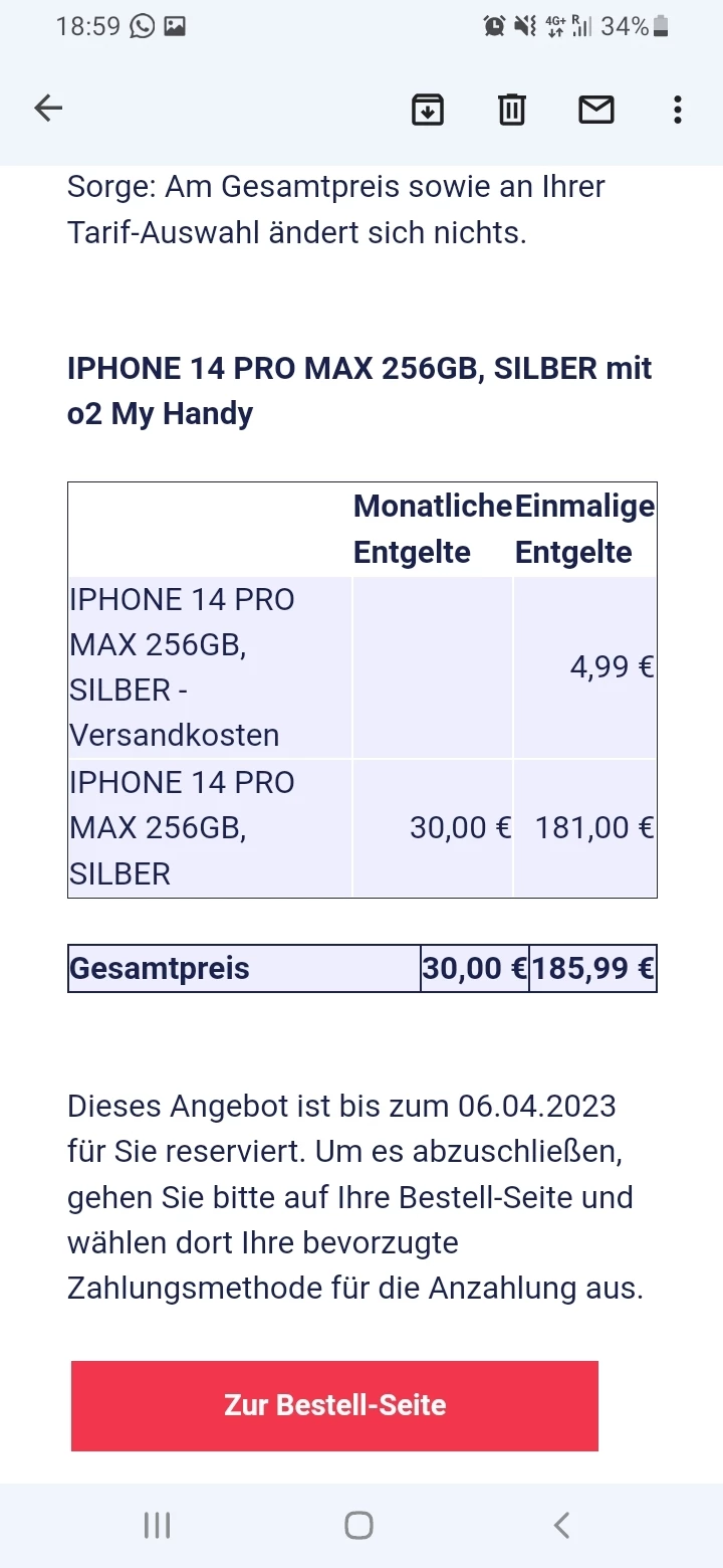 Gut, ich würde gerne wissen, ob ich mit einem portugiesischen Bankkonto und portugiesischen Dokumenten ein Telefon bekommen und monatlich bezahlen könnte und wie viel ich in diesem Fall für ein iPhone 14 pro max bezahlen müsste