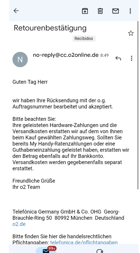 Sobald das Handy bei uns eingegangen ist und die Rückabwicklung abschließend bearbeitet wurde, wird dir dies auch noch einmal per Mail bestätigt.