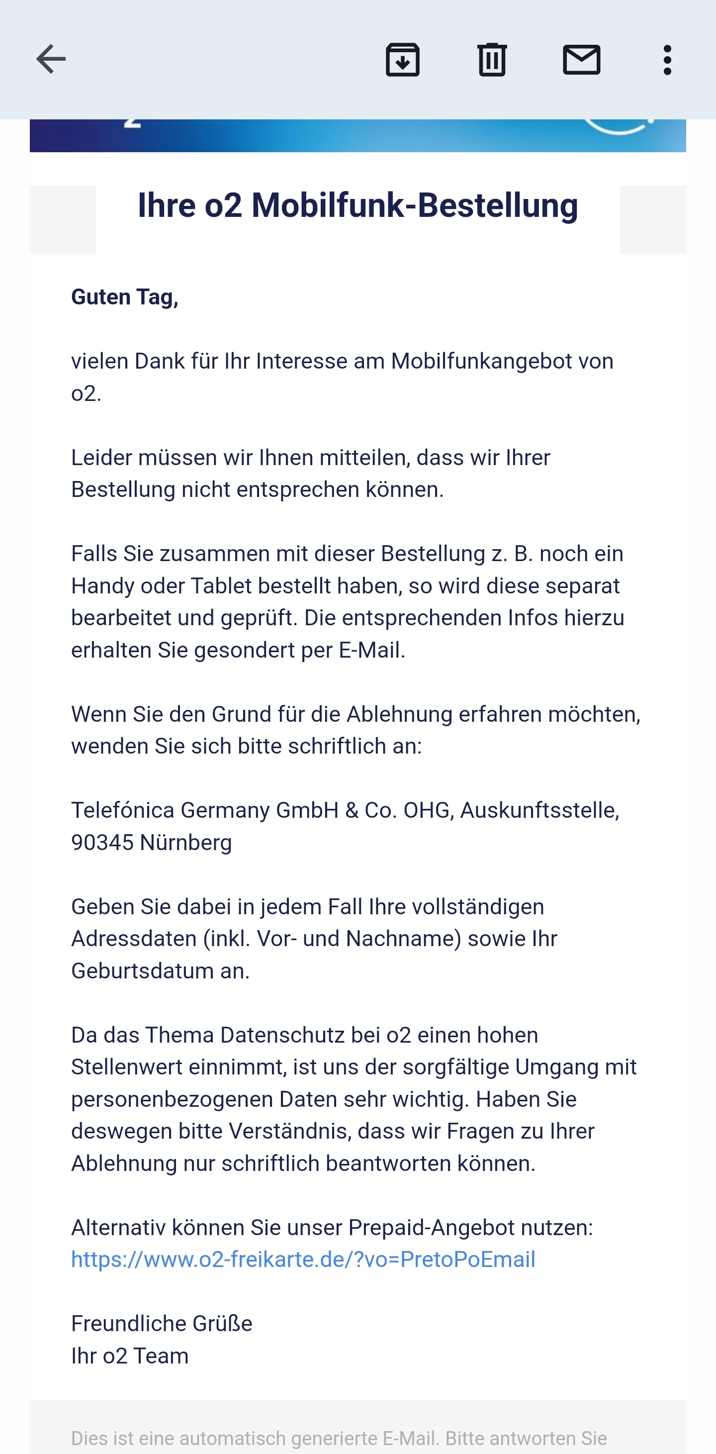 Wenn du den Grund wissen willst, dich schriftlich wie in der Mail geschrieben an die angegebene Adresse wenden.