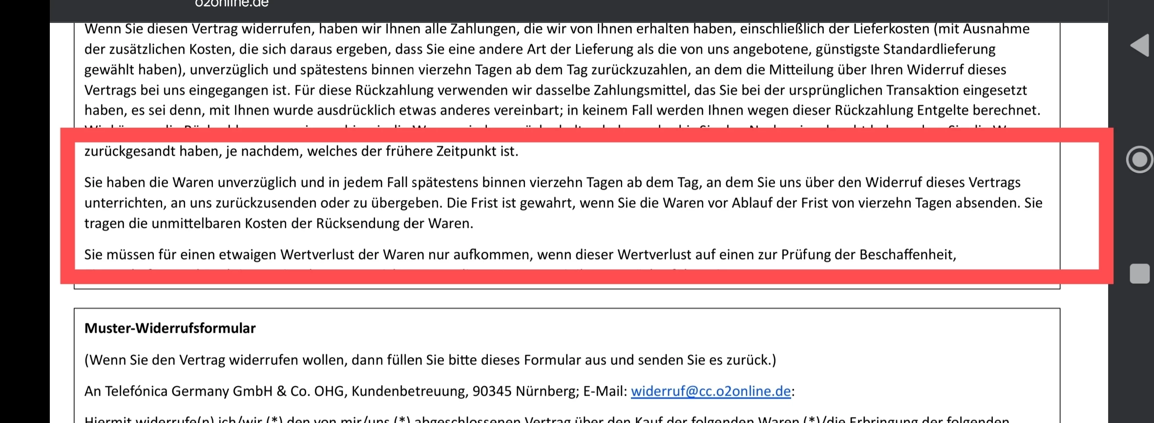 Handy habe ich am 12.12. erhalten, widerrufen habe ich es am 22.12.