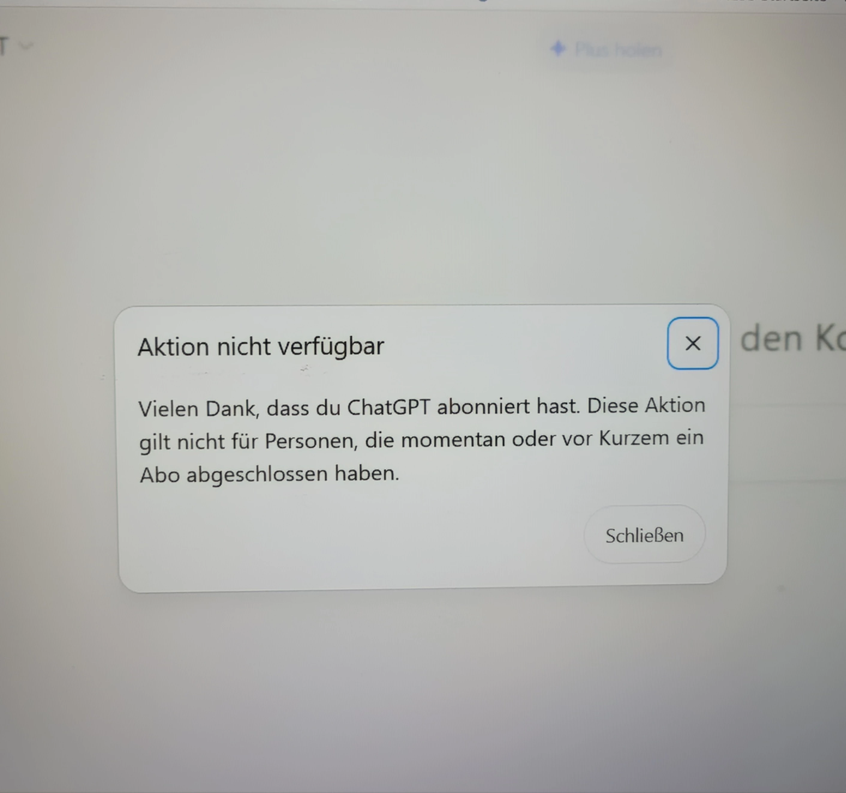 Wollte gerne diesen Priority Vorteil nutzen,aber geht wohl nicht- wenn ich über den Link an Chat GPT Seite weitergeleitet werde ,erscheint mir die Meldung,dass es nicht möglich ist bei neu abgeschloßenen Verträgern. Kann eigentlich nicht sein,weil es a) niergondwo stand,b) ich habe seit Jahren eine Vertrag bei O2,dass ich lediglich verlängert habe…. oder ist das wieder eine “Kunden in die Irre führen “Masche?