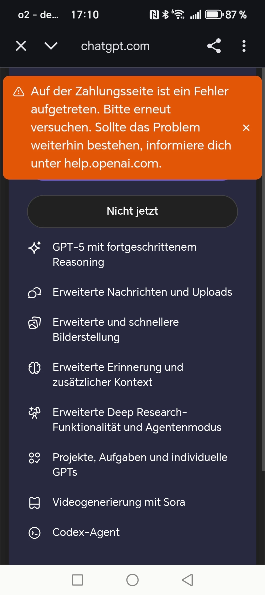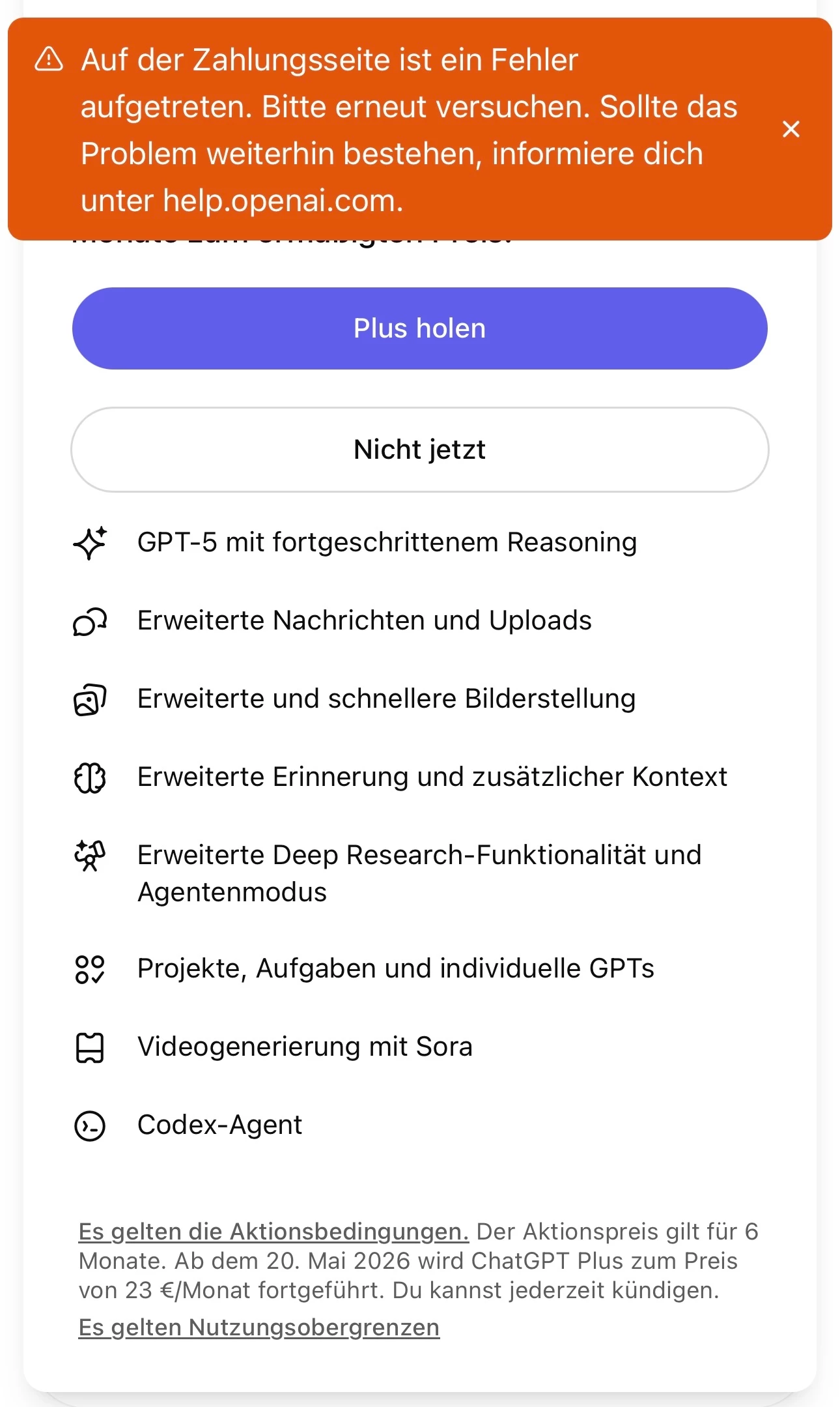Für den Fall, dass die Ursache bei Open AI liegt und dort gefixt wird, versuche es morgen  noch einmal und berichte gerne hier, falls sich bei deinem Versuch etwas geändert hat 🙂