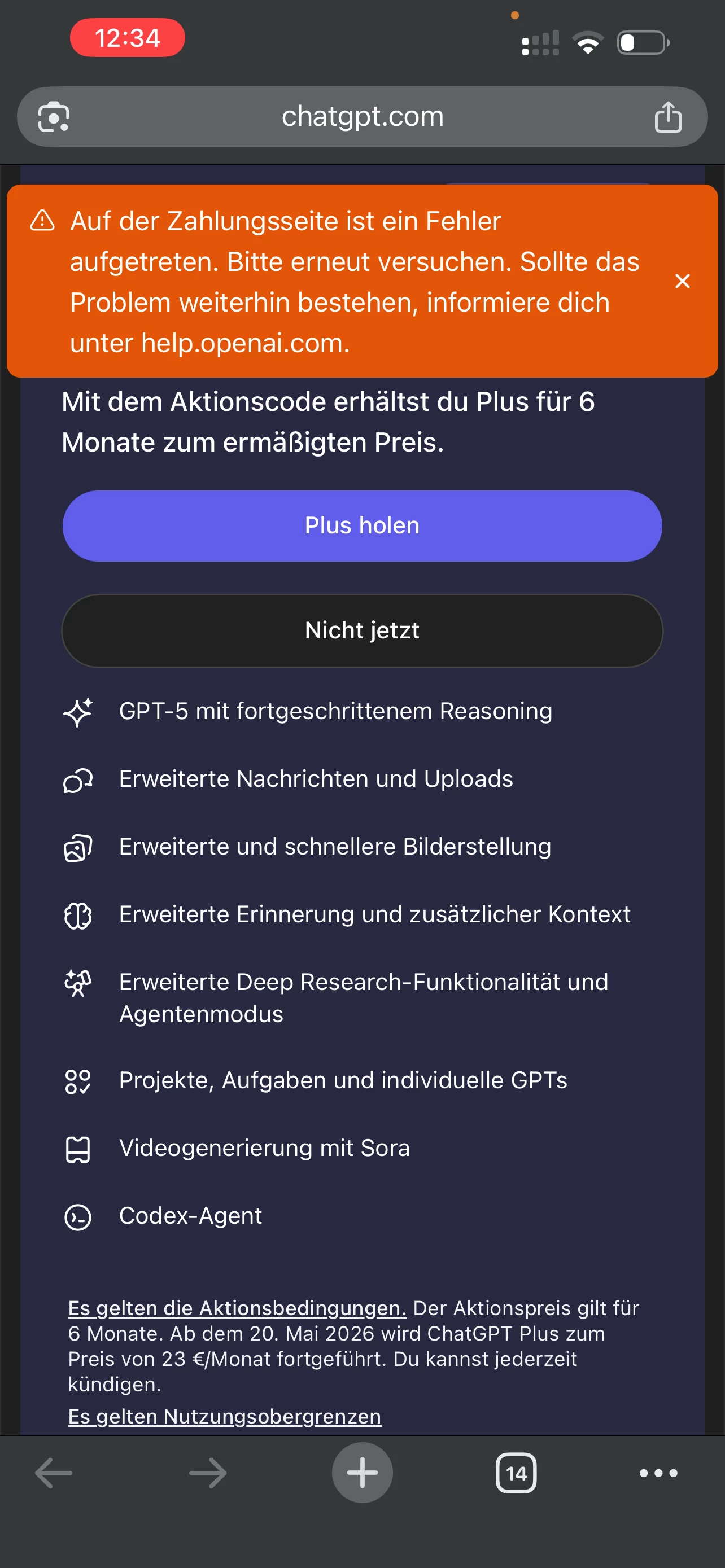 Funktioniert nicht, immer Fehler bei der Zahlung. Neuer Account, verschiedene Browser, VPN, Inkognito... Alles probiert. Bin ratlos.