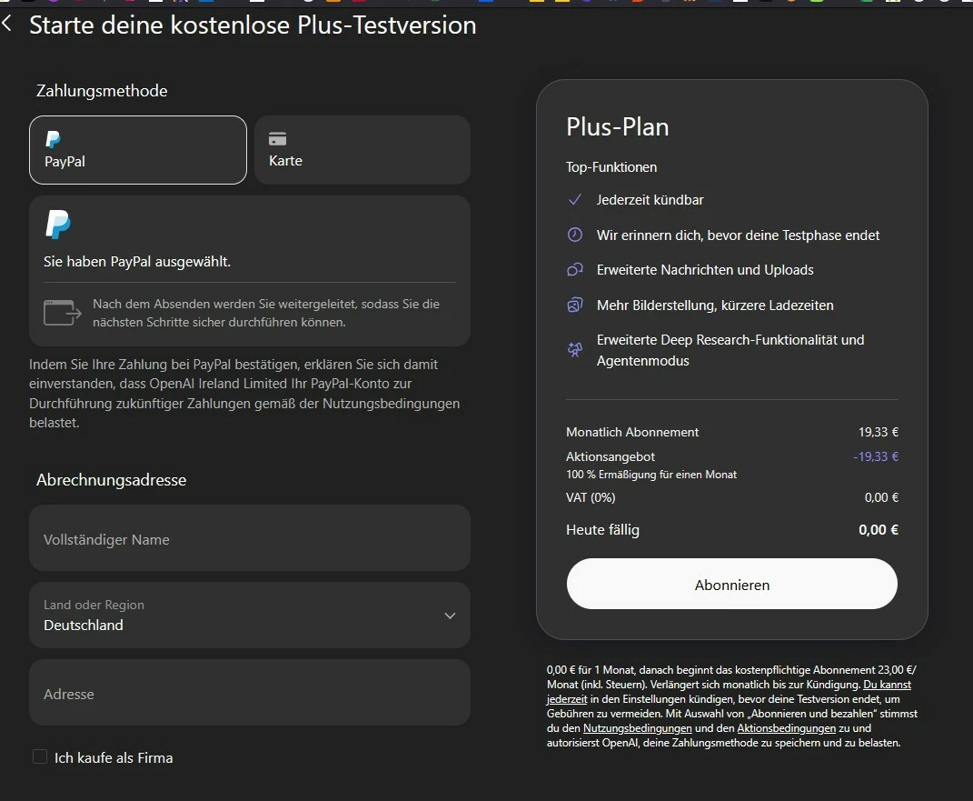 und gilt nicht für Kunden, die bereits ChatGPT Plus oder einen Pro Account haben oder hatten