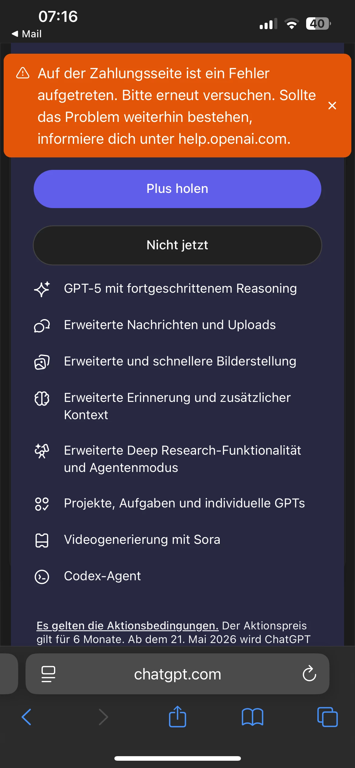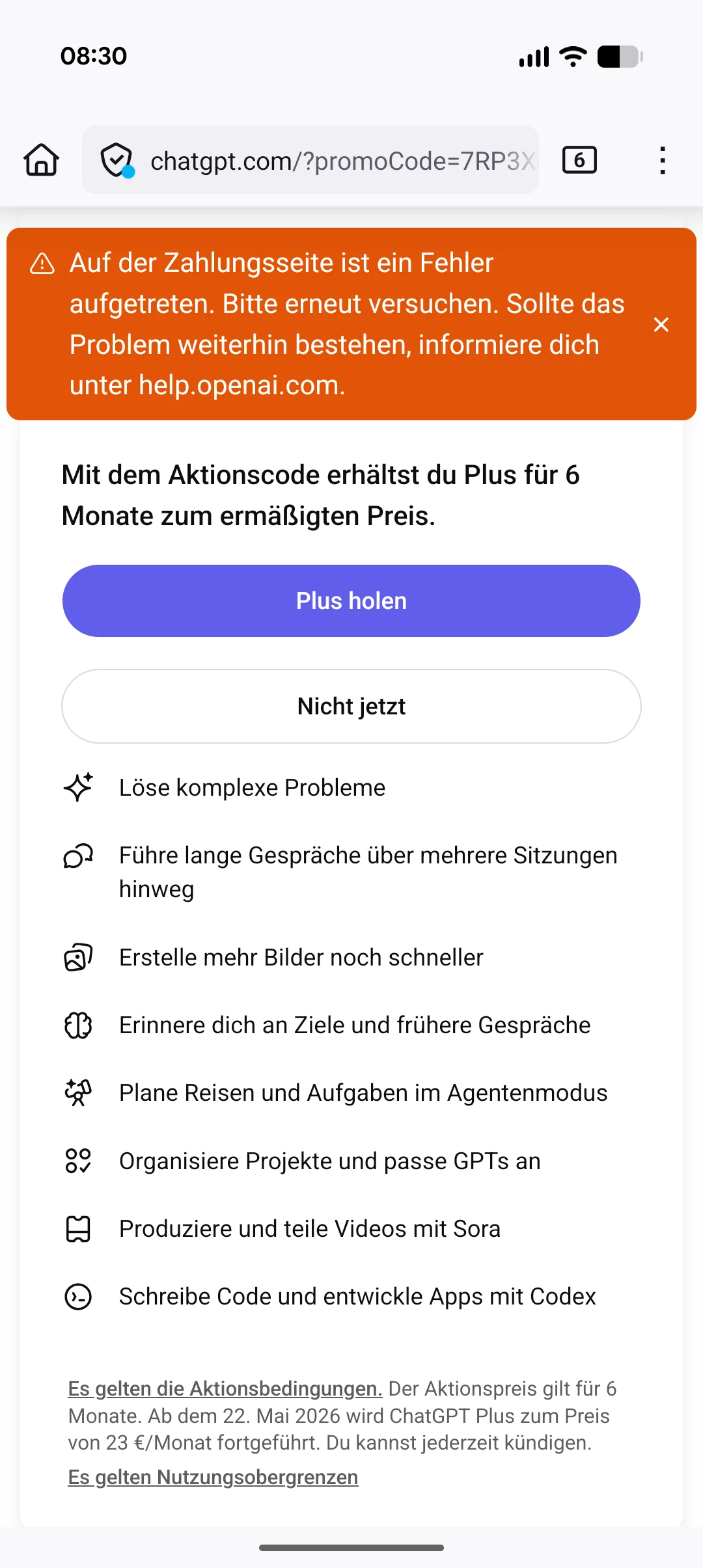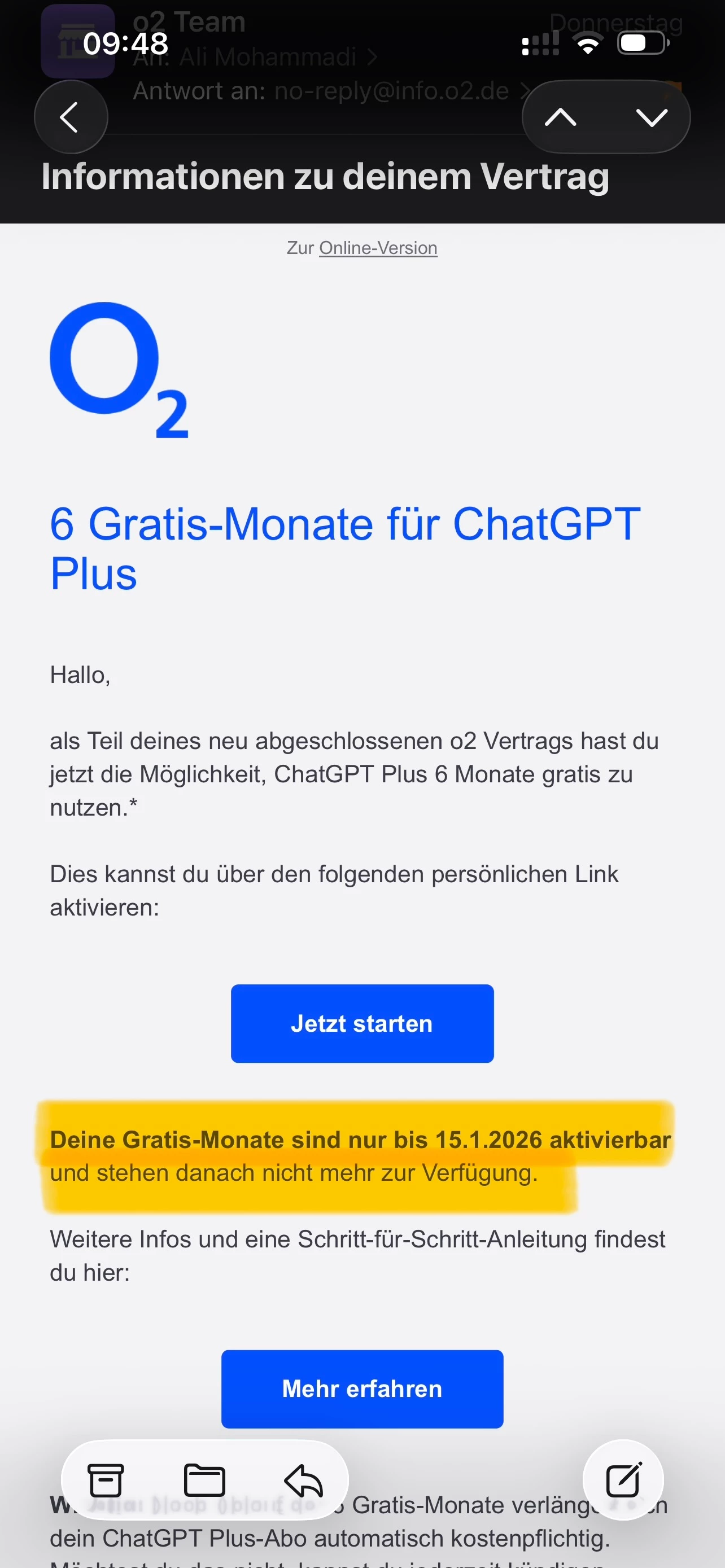 Ich denke, die Situation ist hier ganz anders. O2 wirbt überall damit, dass man ChatGPT Plus sechs Monate lang kostenlos bekommt, aber die Aktivierung ist nur bis zum 15. Januar 2026 möglich.
