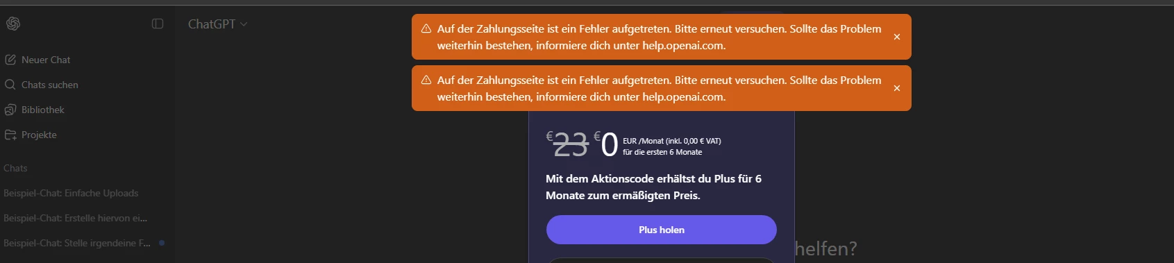 Da muss irgendwas bei OpenAI nicht stimmen an der Schnittstelle zur Eingabe der Zahlungsinformatiion. Ich hatte an “Runde 1” mit den drei Monaten teilgenommen und wurde direkt richtig dort hingeführt und hatte PayPal hinterlegt. Das Problem ist nicht bei o2. ...