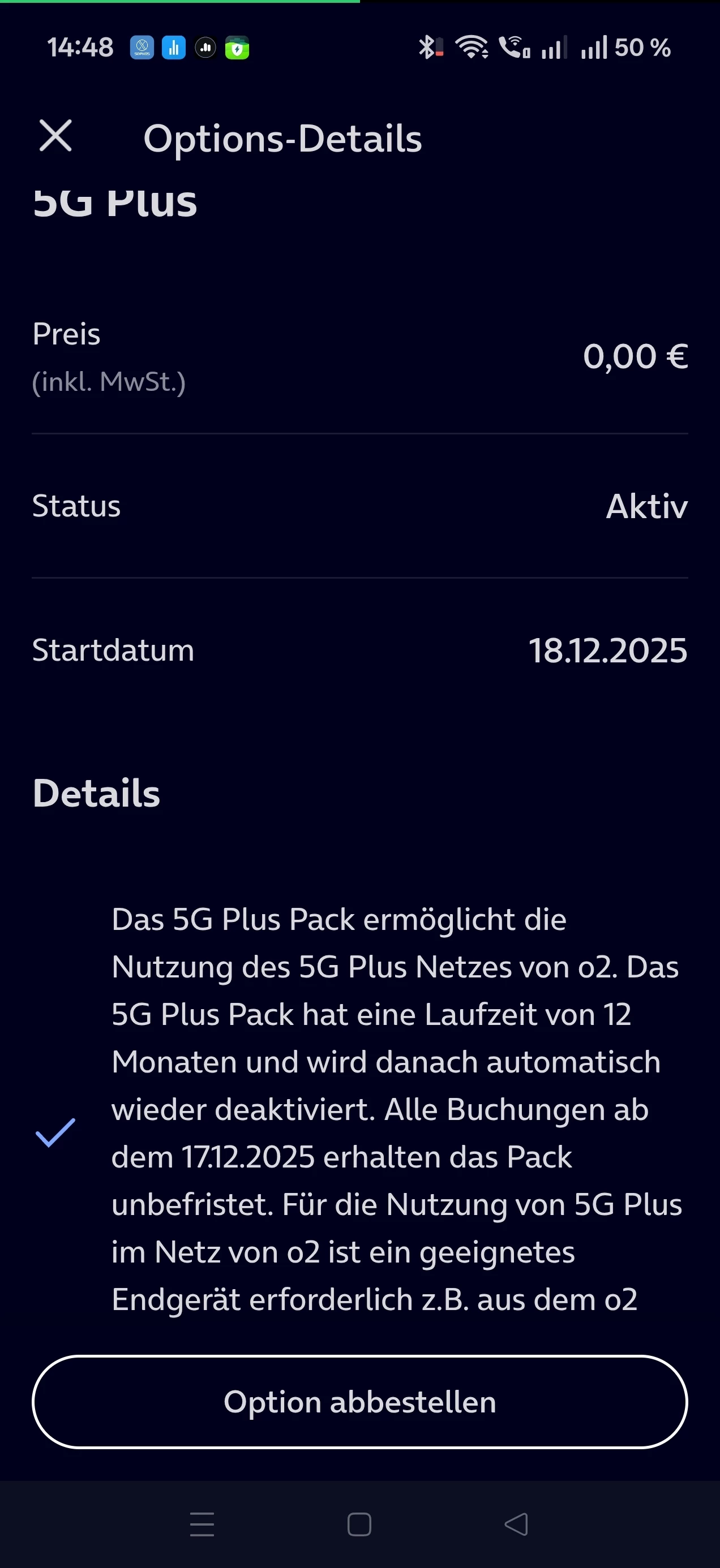 Lasst euch nicht einlullen. Wenn ihr ein modernes Handy habt und Akku sparen wollt, besteht auf die Löschung der alten Option und bucht die neue vom 17.12.2025. Es ist ein Unterschied wie Tag und Nacht, auch wenn der Name gleich geblieben ist!