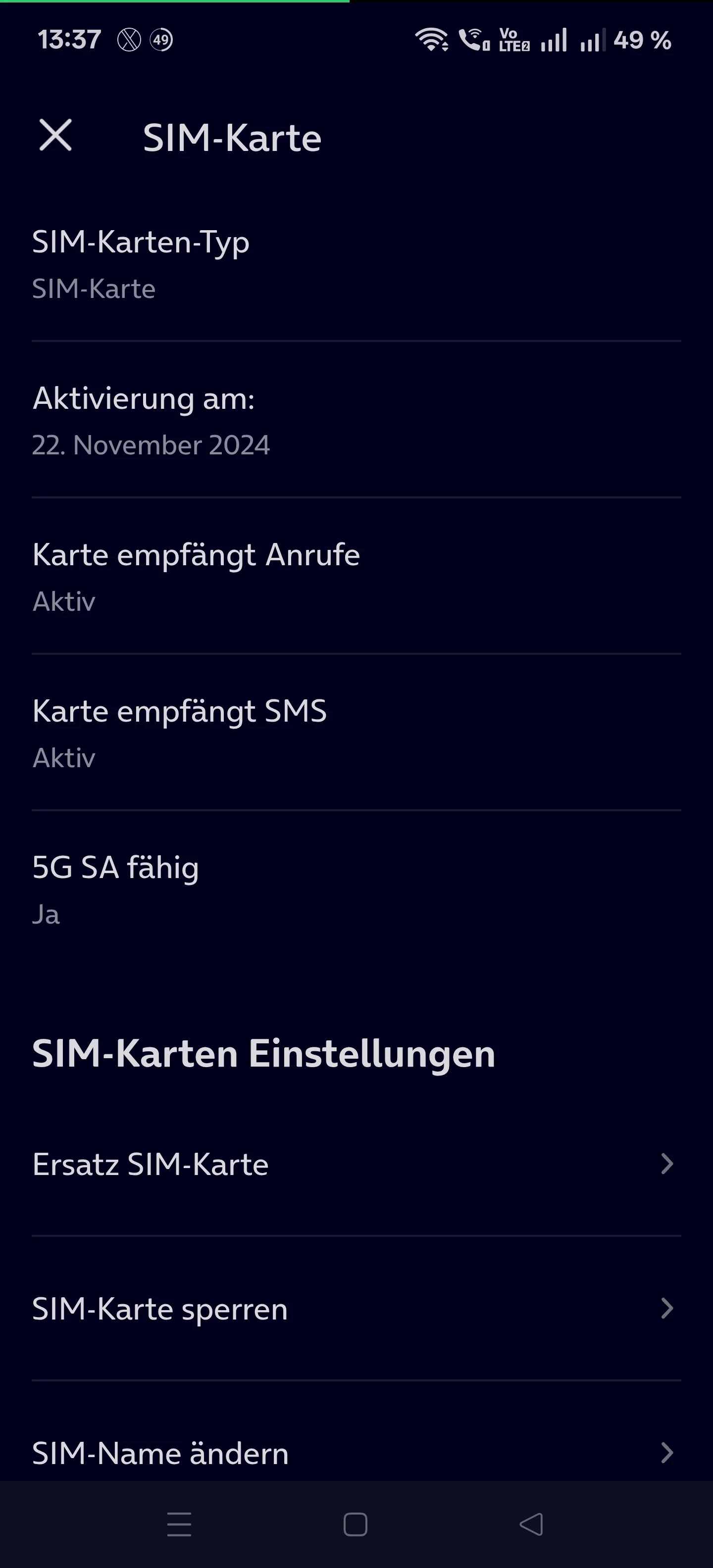 Und unter “Karte empfängt SMS” habe ich noch “5G SA fähig”