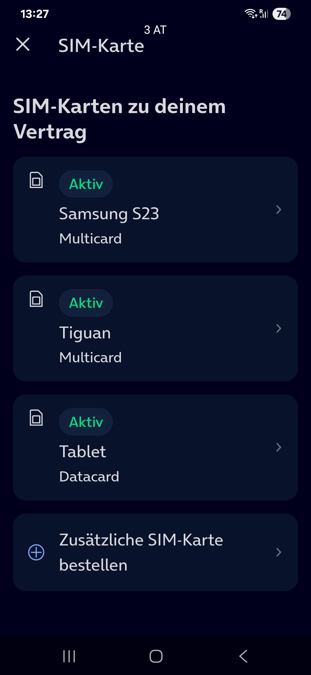 Vertrag -→ SIM Einstellungen -→ SIM-Karte verwalten