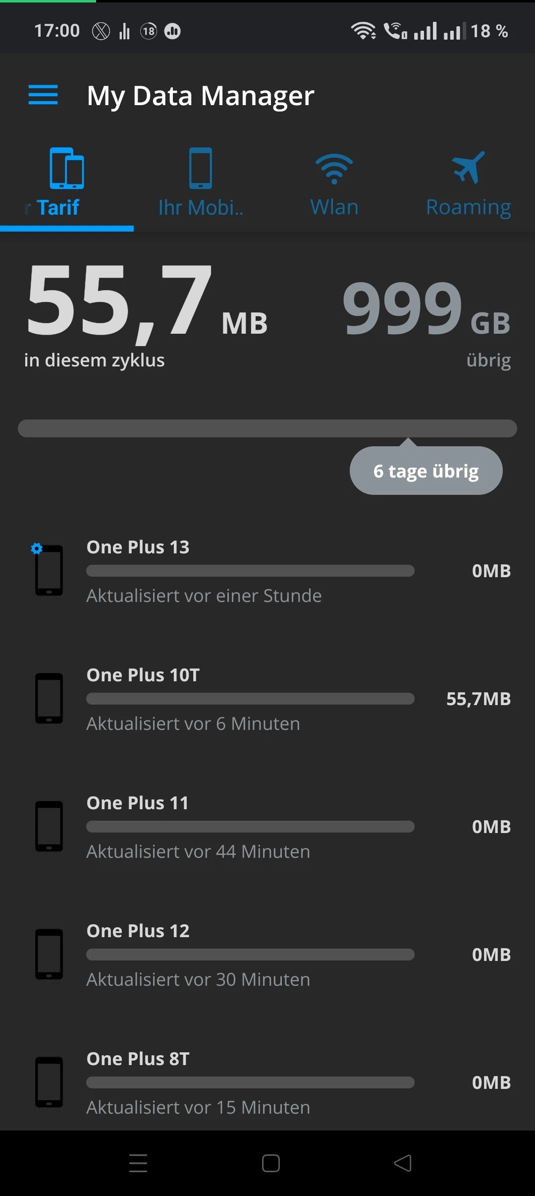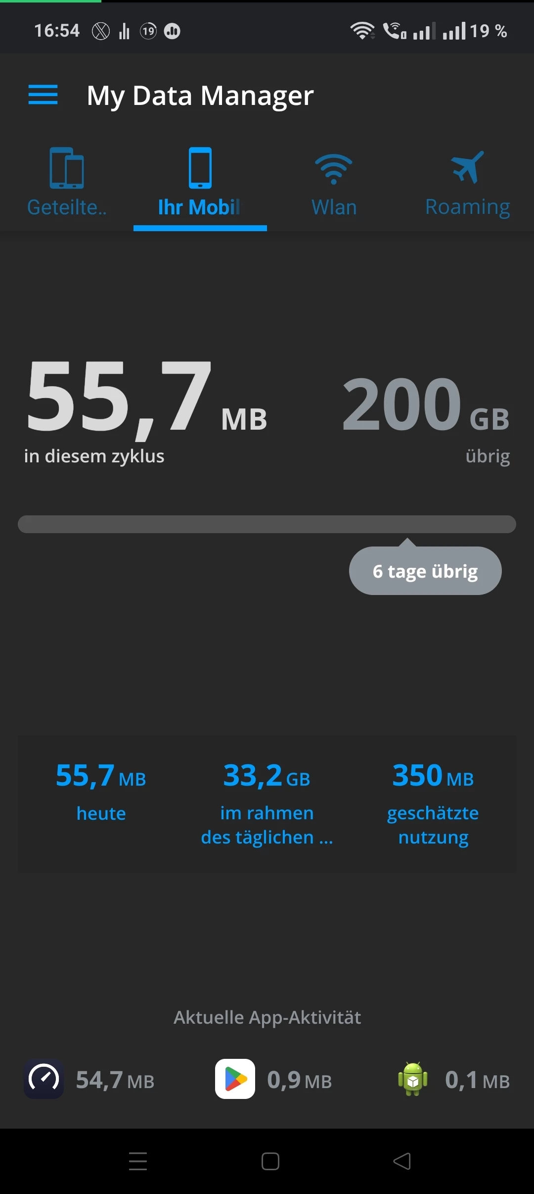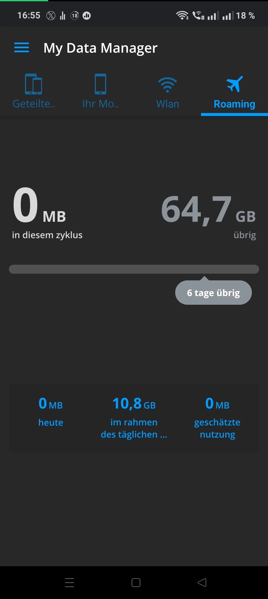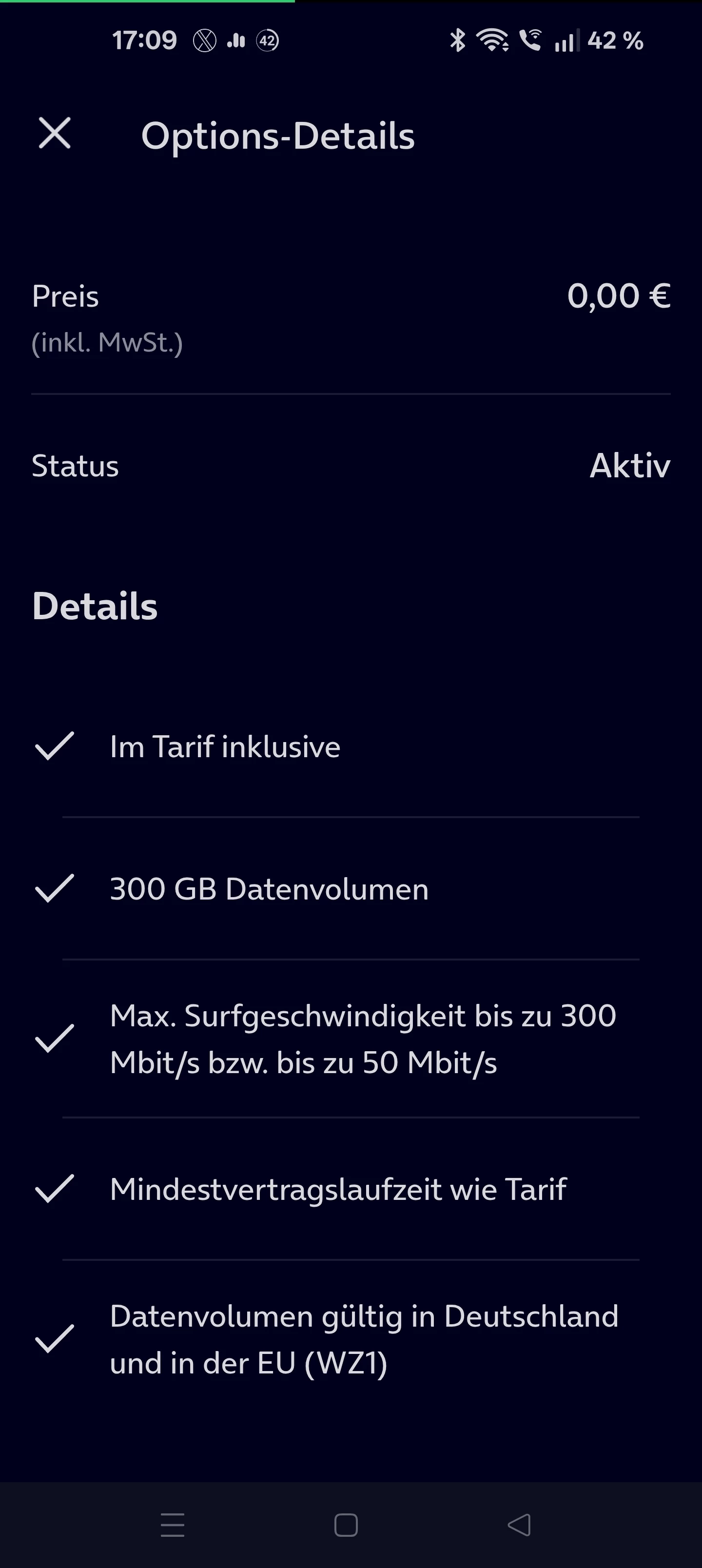 Unter Options Details wird immer noch angezeigt “Datenvolumen gültig in Deutschland und in der EU (WZ1). Das ist … sorry … Unfug weil es nicht zu der Verbrauchsanzeige passt die nach wie vor nicht daran interessiert ist zu funktionieren.