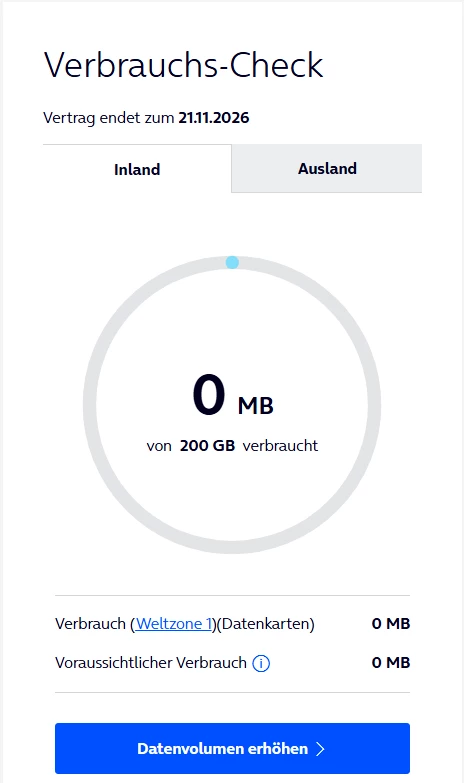 Dann am 01.10.2025. FUP wird scharf geschaltet. Ergebnis: VIER Kreise unter Vertrag in der App. Zähler bleibt wieder brav bei 0 stehen. Keinerlei Bewegung. Onlineportal Meldung: Zähler wird ZURÜCKGESETZT (er lief jedoch weiter mit dem alten bisher verbrauchten Datenvolumen)