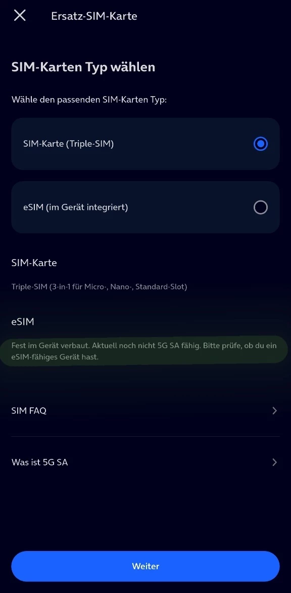 Und er erscheint auch nur beim bestellen einer Ersatz-SIM/ eSIM.