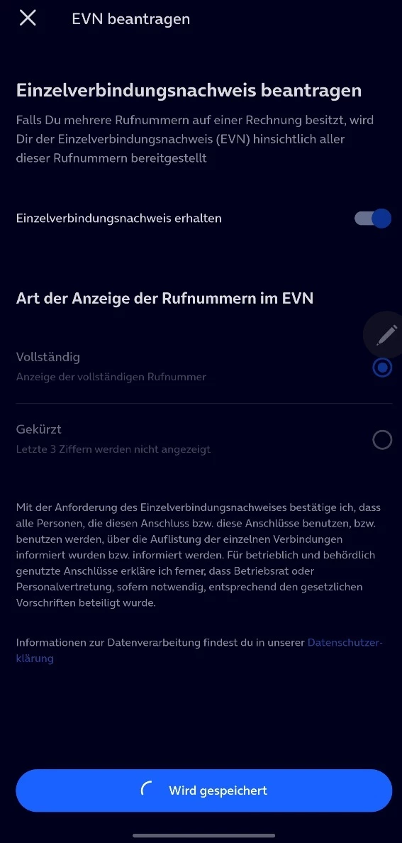 Status in der App verharrt in EVN deaktiviert.