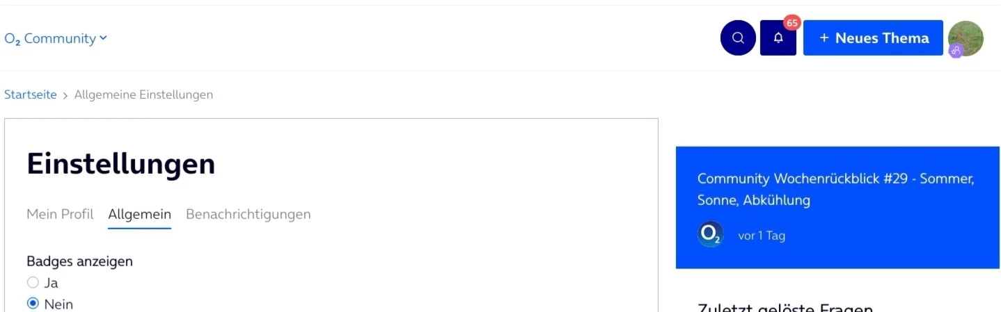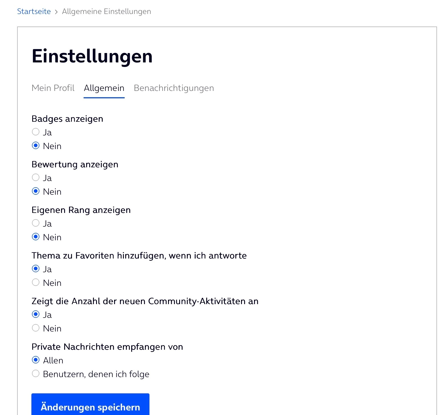 Danke Bumer fürs Screenshot reinpacken - genau, die Badges können dort deaktiviert werden, wenn ihr euer Profil zu überladen findet z.B. 😊