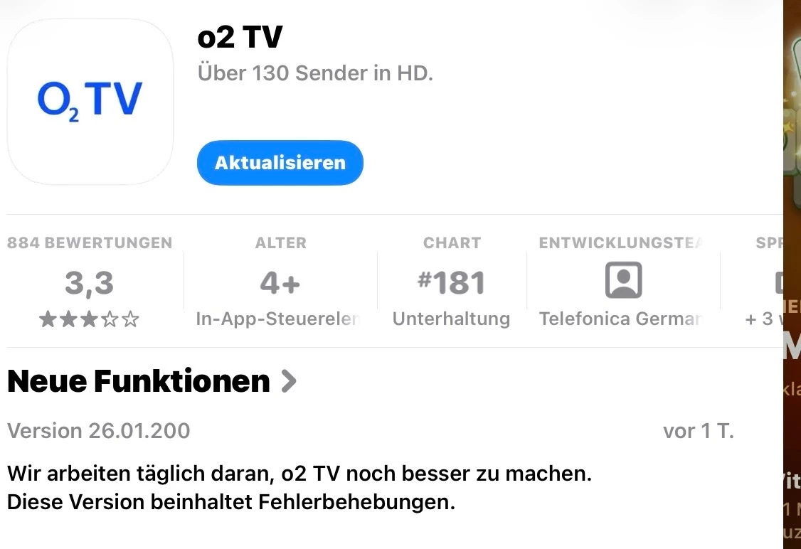 Die Einschränkungen sollten sich aber nicht auf die O2 TV App beziehen.