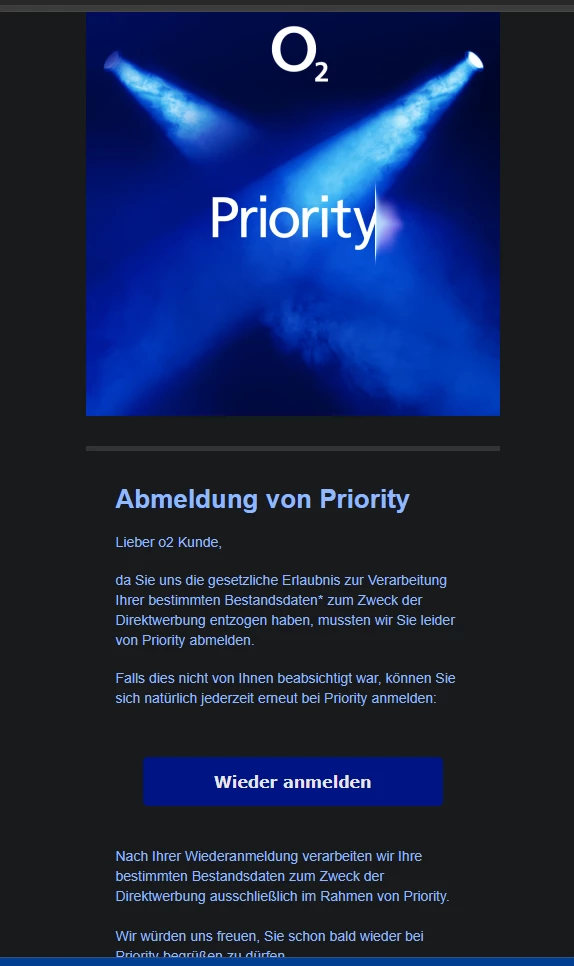 Also entweder ist das Spam oder o2 versucht jetzt Werbedaten mit der Brechstange zu bekommen.