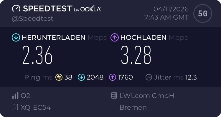 erstmal danke für deine Nachricht. Wenn ich deine Geschwindigkeit sehe, kann ich absolut nachvollziehen, dass du da not amused bist. Westerstede ist gar nicht weit weg von mir, bin selbst häufiger dort und teste auch mal sobald ich wieder dort bin.