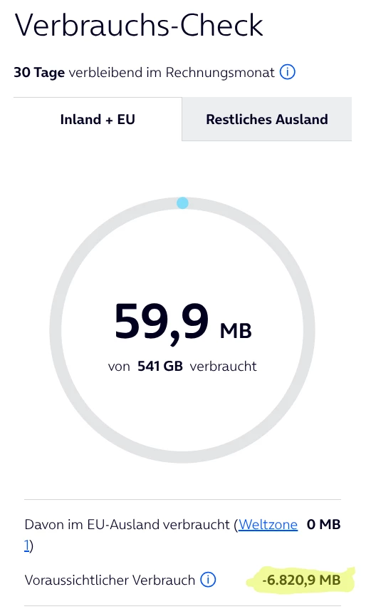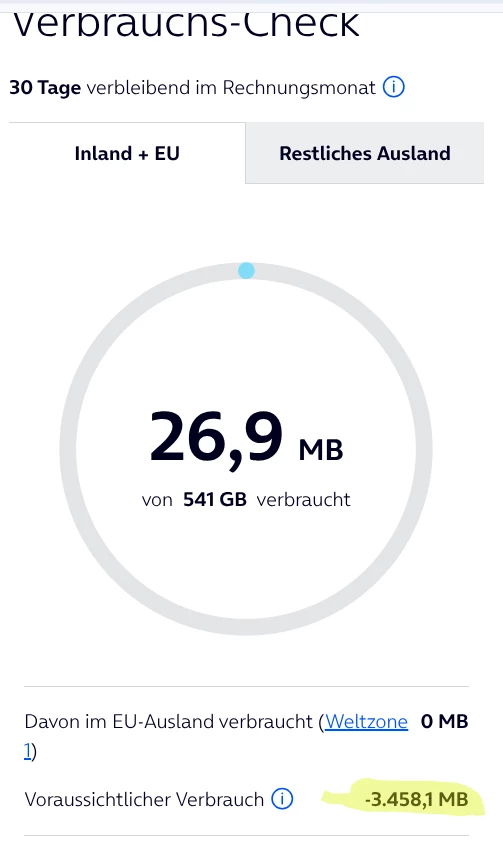 Bei mir ist es sogar so das der Verbrauchszähler in der EU (FUP) weder in der App noch im Portal funktioniert. Da steht stolz die “0” . Deshalb hatte ich mir vorsorglich eben “my Data Manager” draufgesetzt um es bei den Multicards im Auge zu behalten.