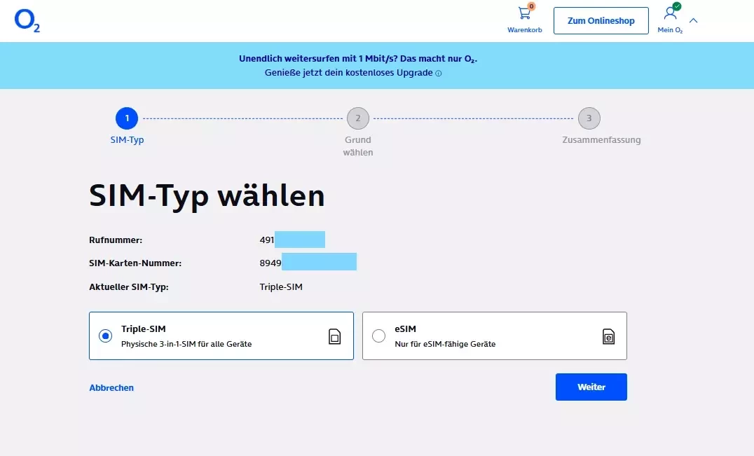 Auch gut, eine Ersatzkarte kostet bei Prepaid 0,00 Euro, egal ob als Plastik- oder E-Sim.