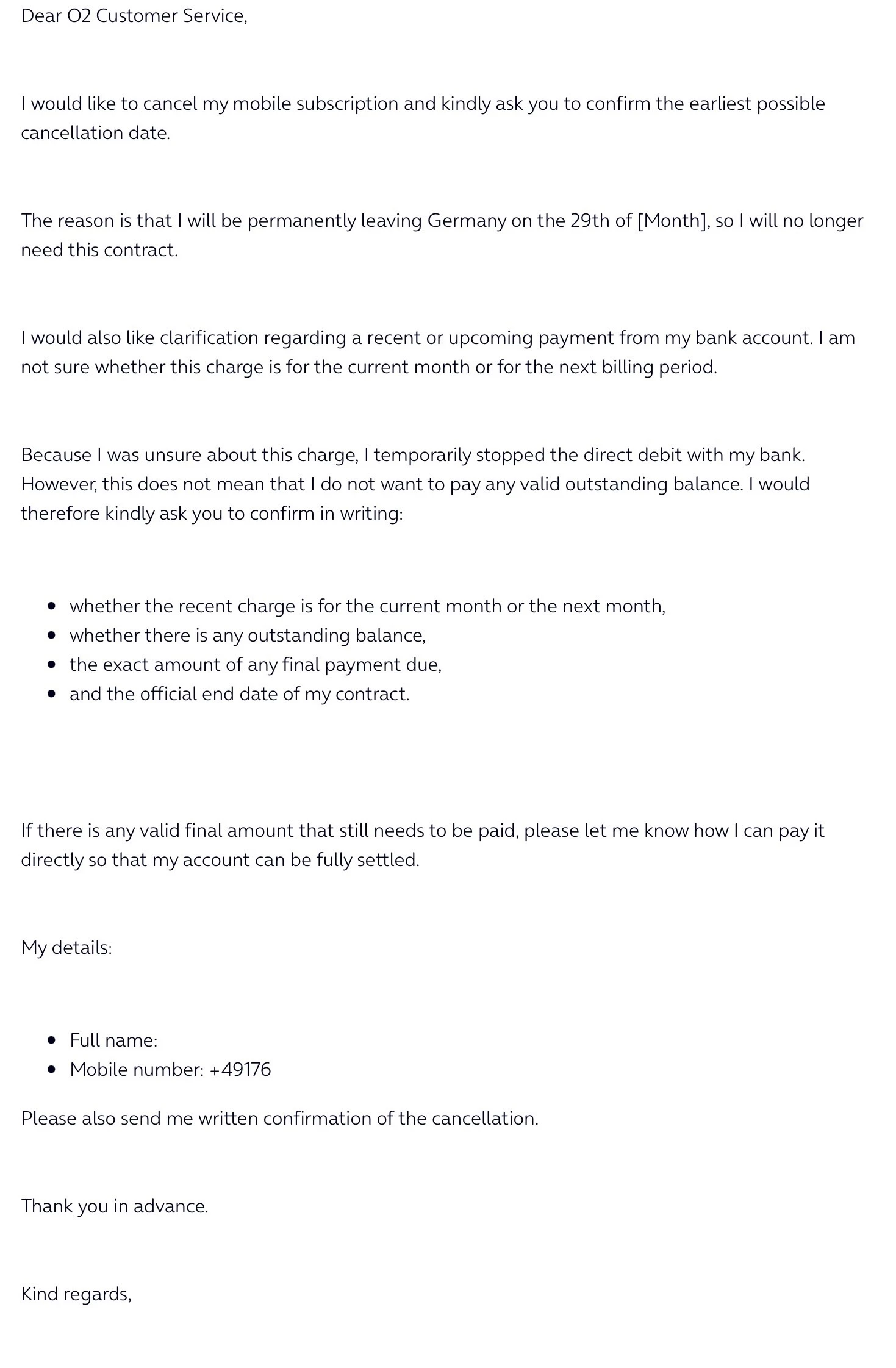 Cancellation of My Mobile Contract and Clarification of Recent Payment